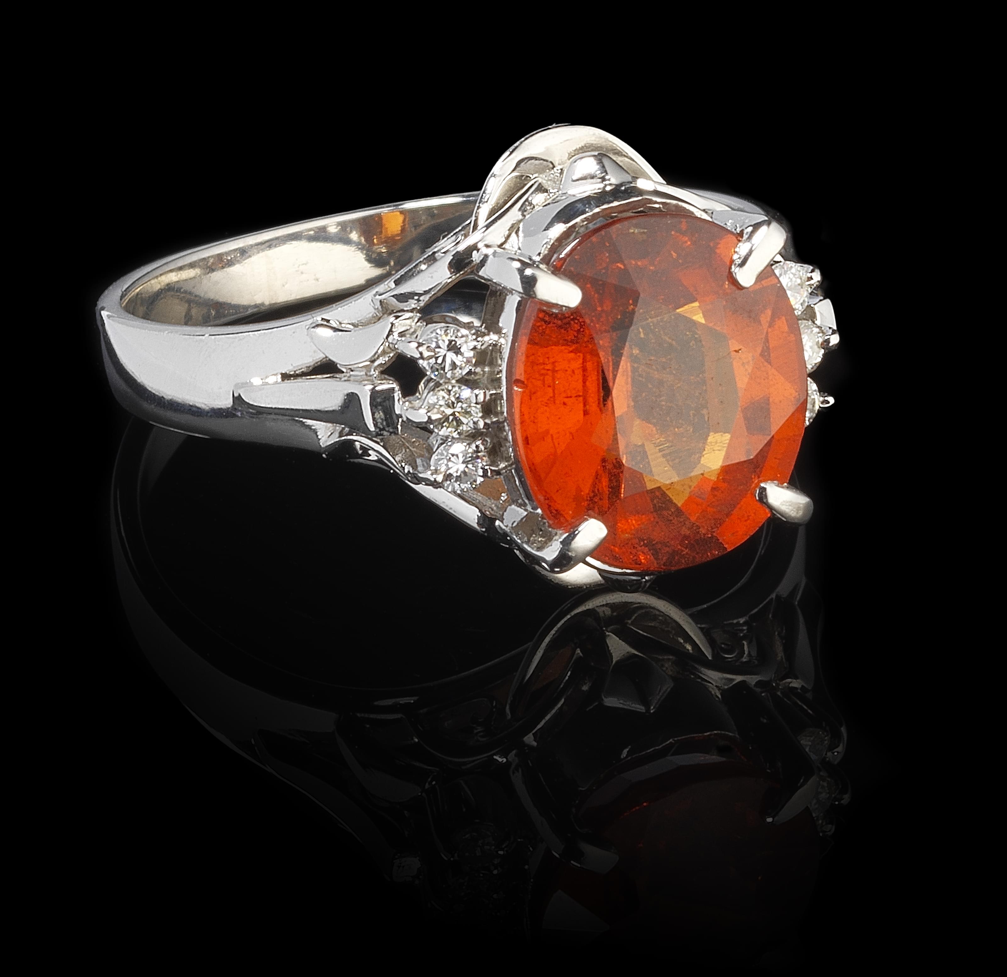3444. *Bague sertie d'un grenat spessartite taille ovale (3,56 ct)