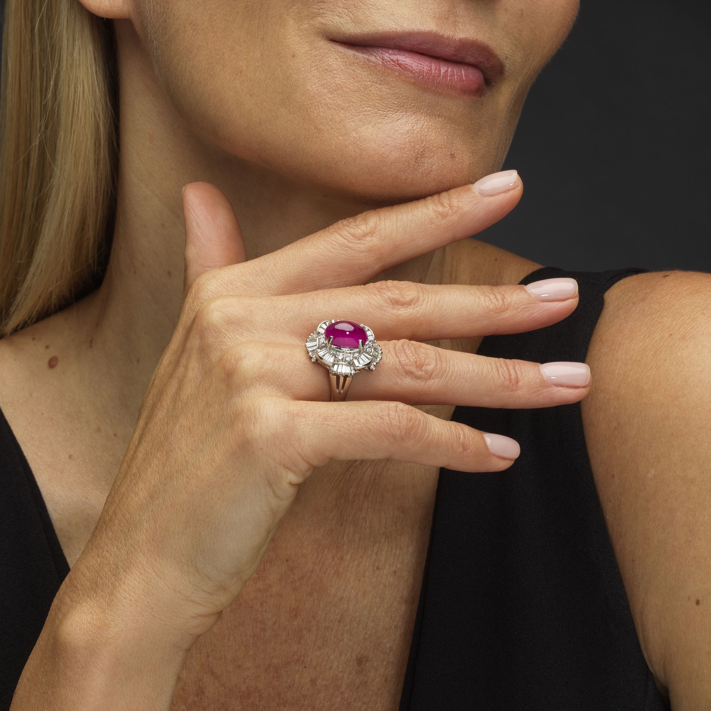 4675. *Bague sertie d'un rubis birman taille cabochon ovale (5,83 ct)