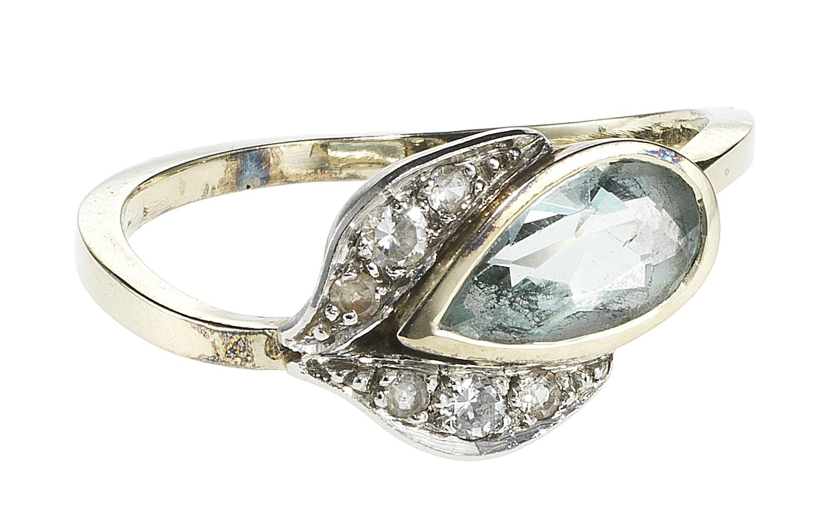 3219. Bague sertie d'une aigue-marine taille poire (env. 1 ct) épaulée de diamants