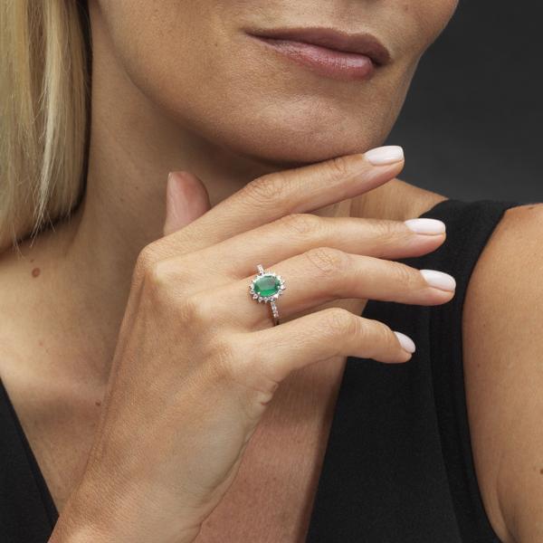 3342. *Bague sertie d'une émeraude zambienne taille ovale (1,4 ct)