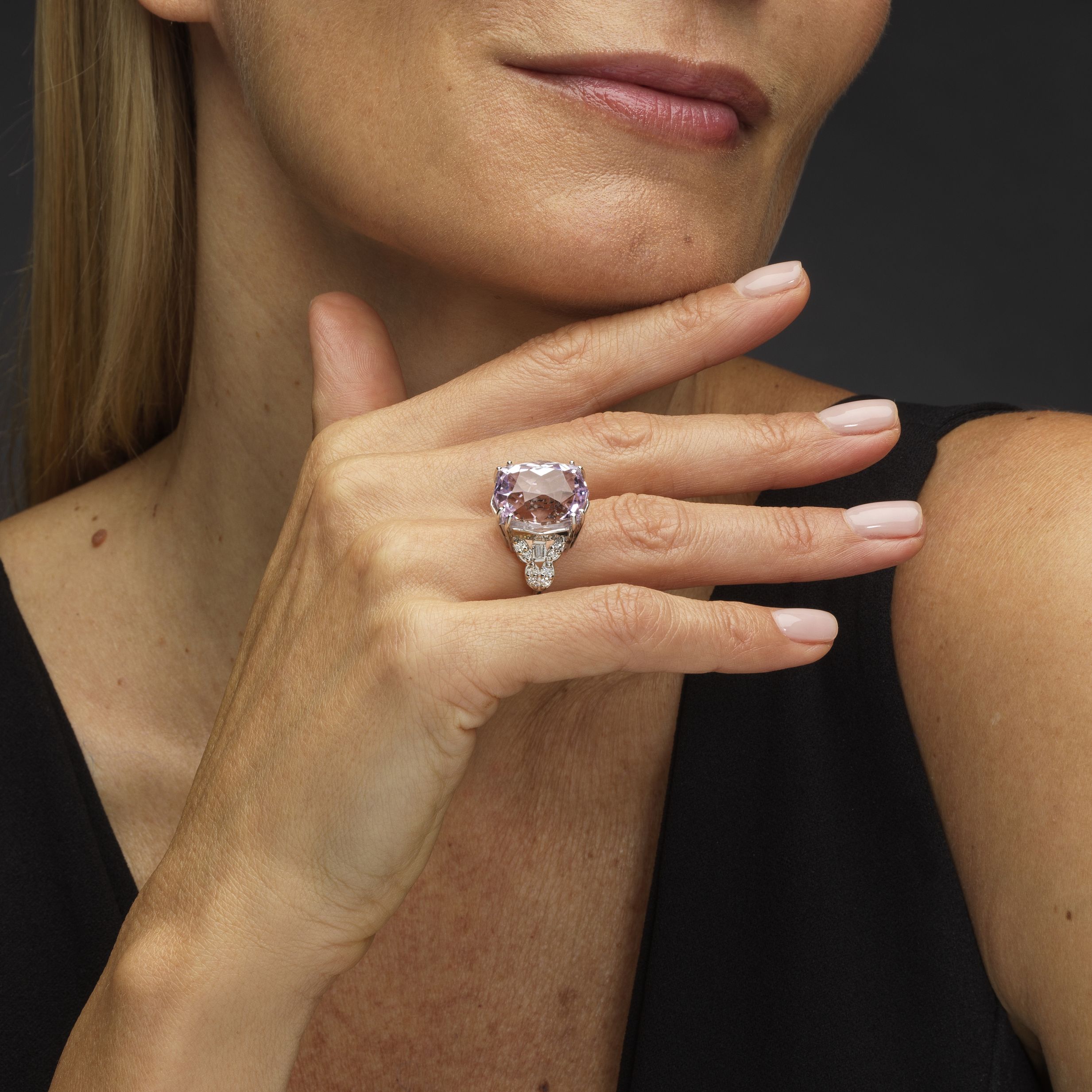 4501. *Bague sertie d'une kunzite taille fantaisie (env. 23 ct)