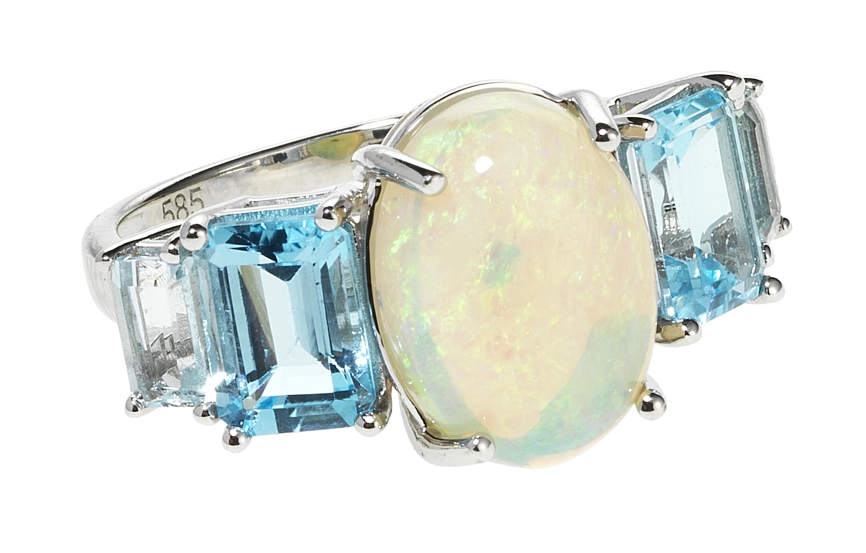 3334. *Bague sertie d'une opale taille cabochon ovale (env. 3 ct)