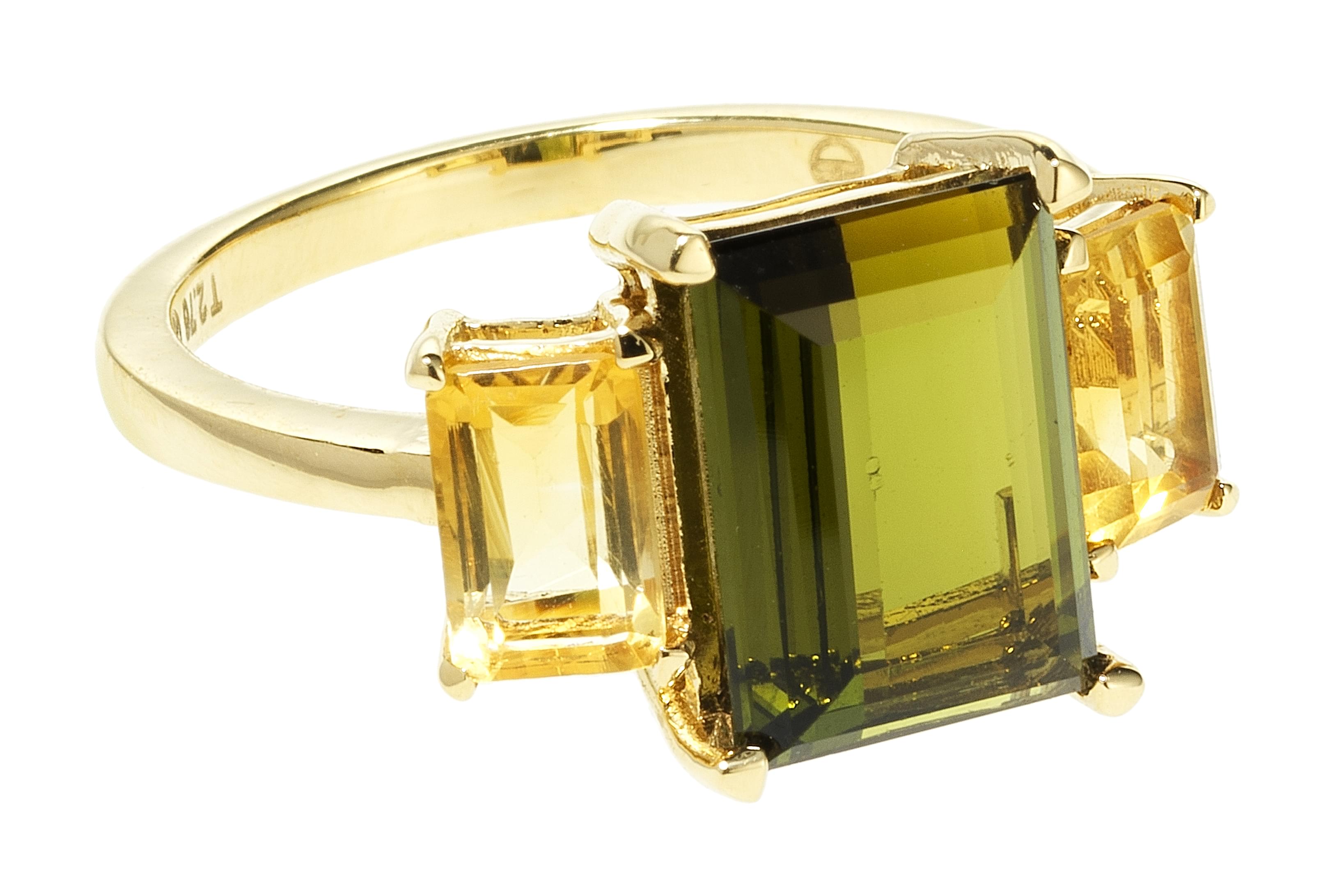 3193. Bague sertie d'une tourmaline verte taille rectangle (2,76 ct)