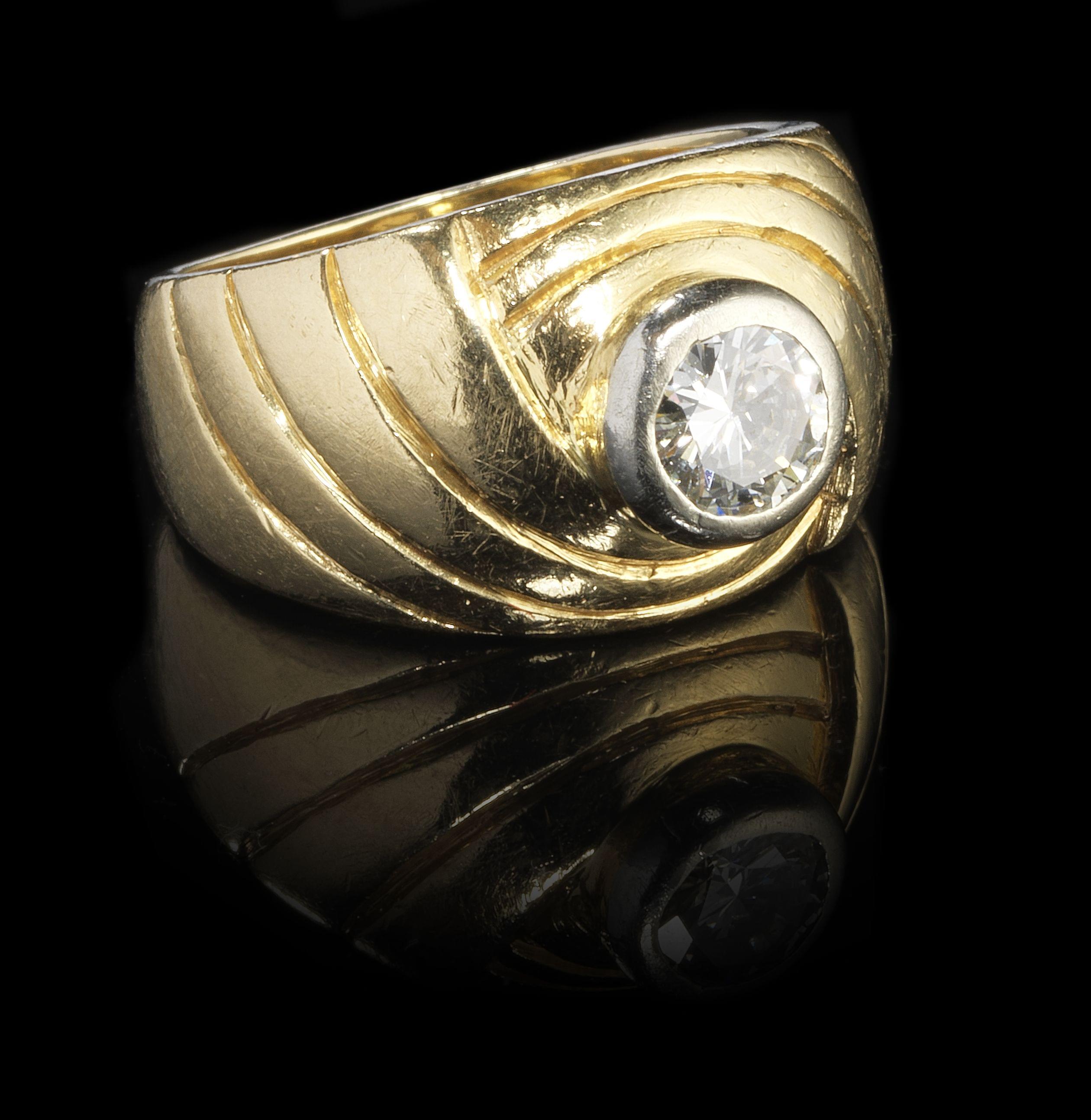 3442. Bague solitaire bandeau centrée d'un diamant (env. 0,5 ct)