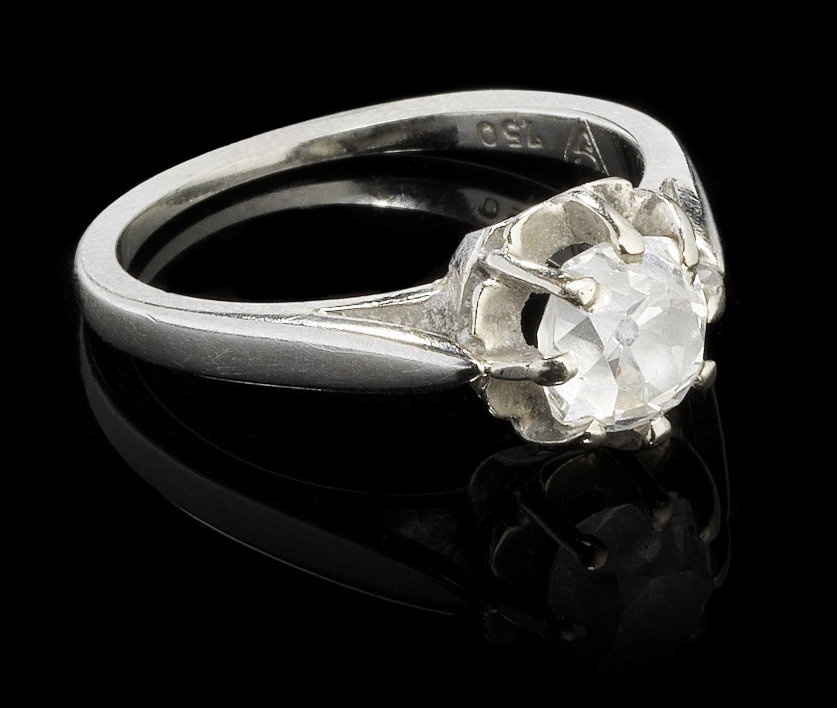 Cadran argenté, aiguilles et index bâtons noirs, or gris 750, D...