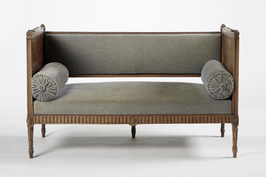 Bois naturel et velours gris, L 146 cm. Provenance: Château fribourgeois