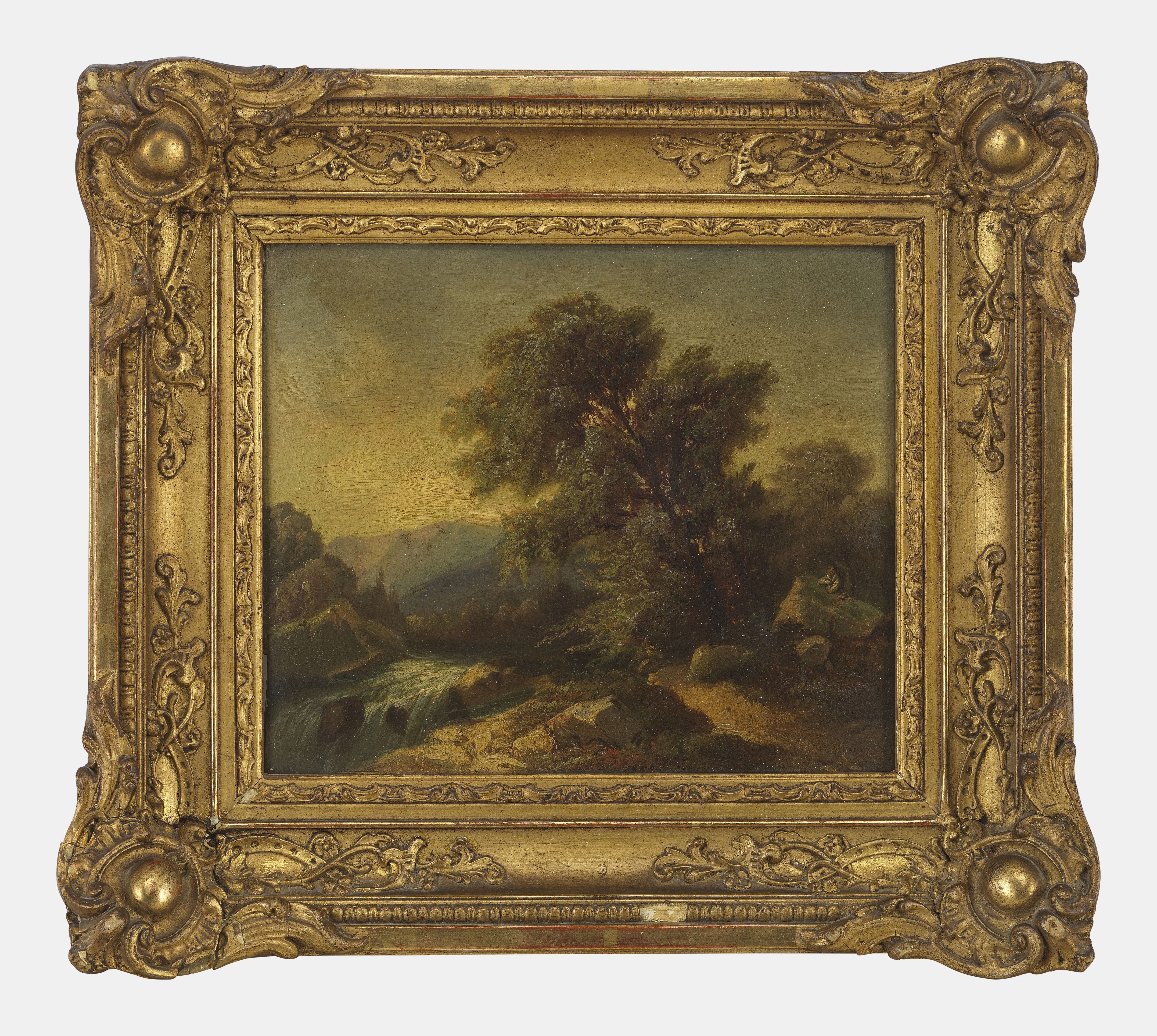 Paysage de montagnes, huile sur toile, signée 18x20 cm