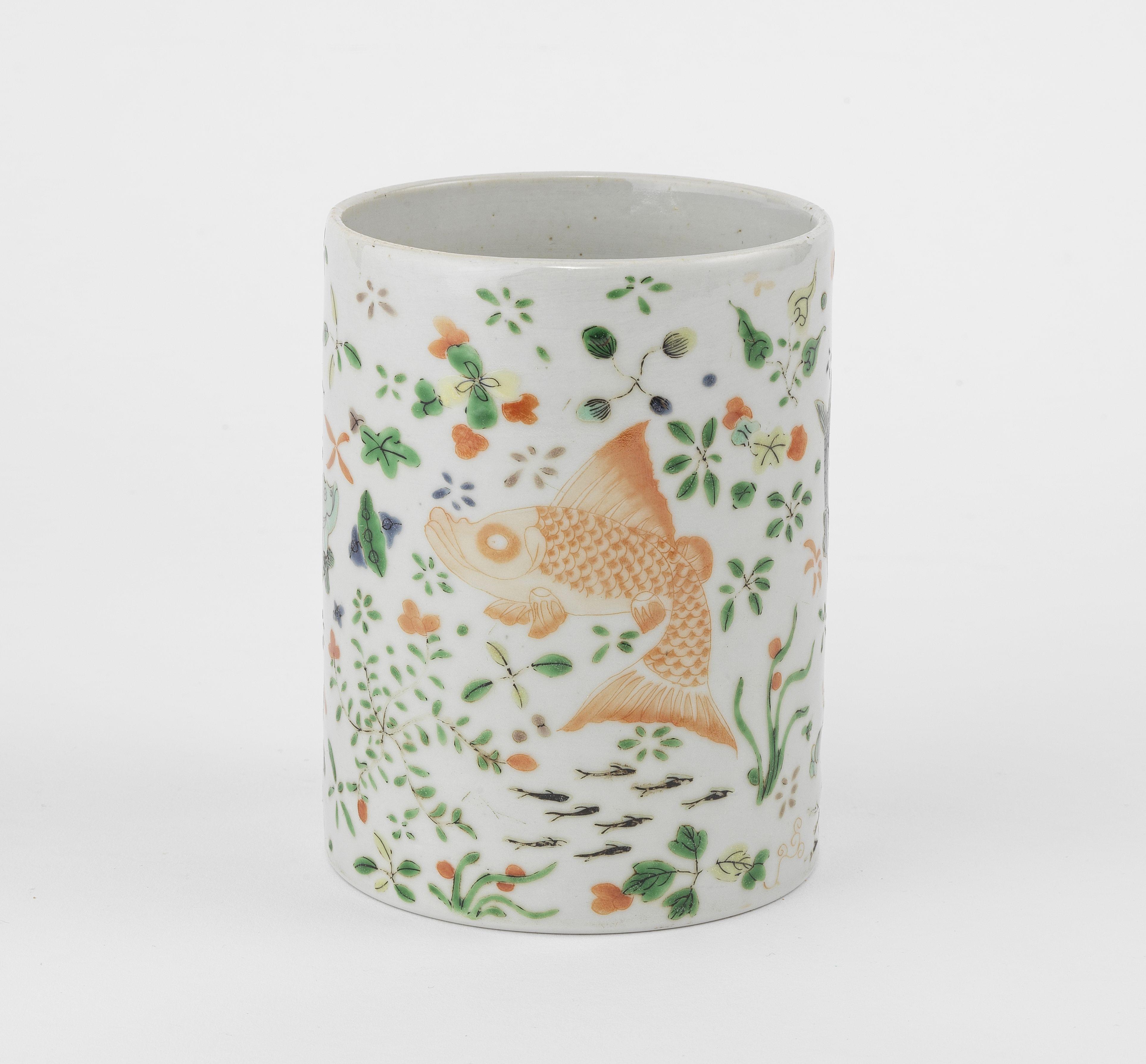 Porcelaine émaillée polychrome à décor de poissons, H 13 cm