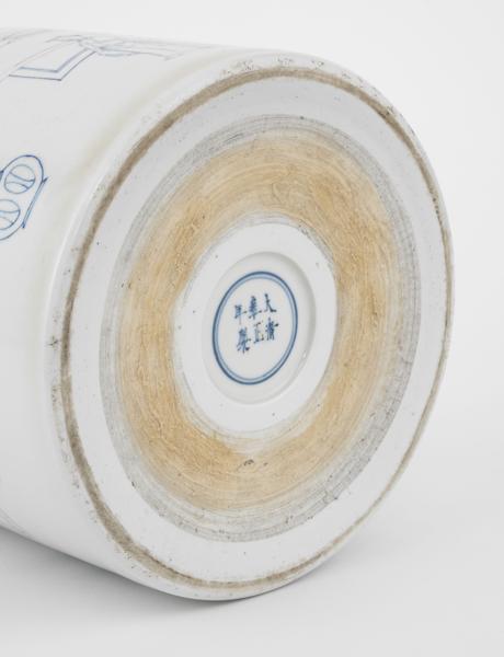 Porcelaine émaillée bleu blanc à motif du caractère du double bo...