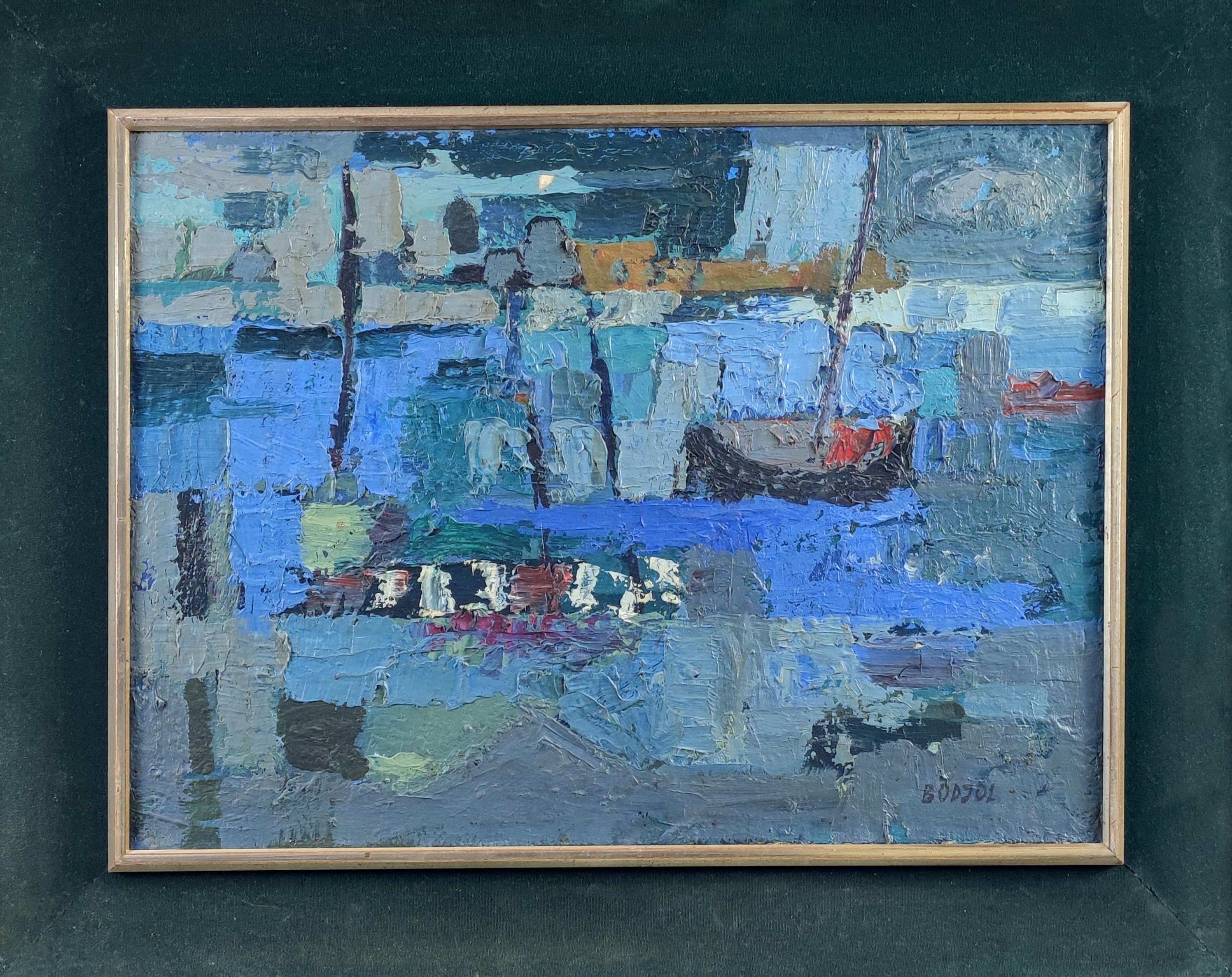 Bateau en bord de mer, huile sur isorel, 26x22 cm
