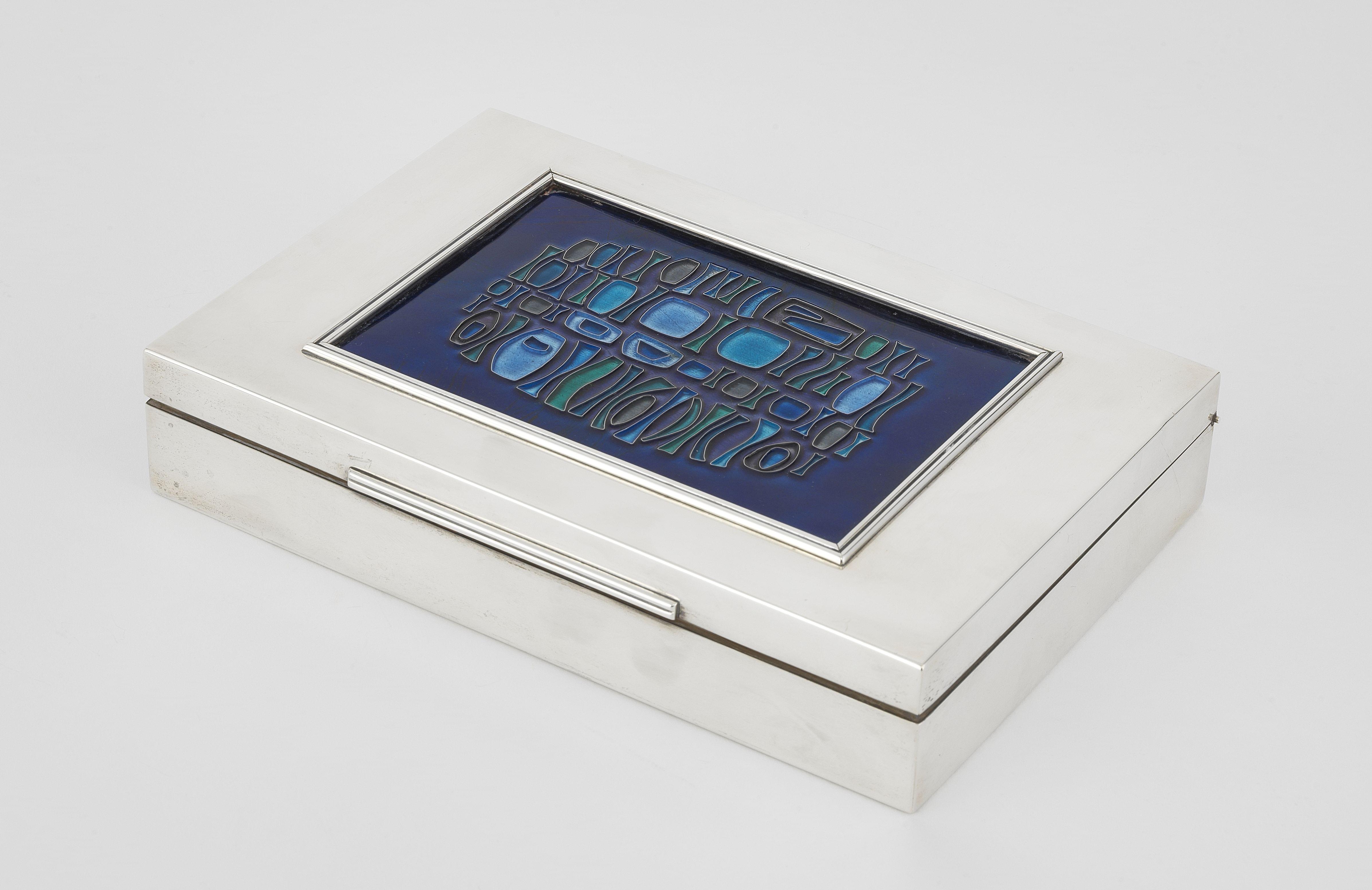 3986. Boîte à cigarettes à décor d'une abstraction géométrique en camaïeux bleus