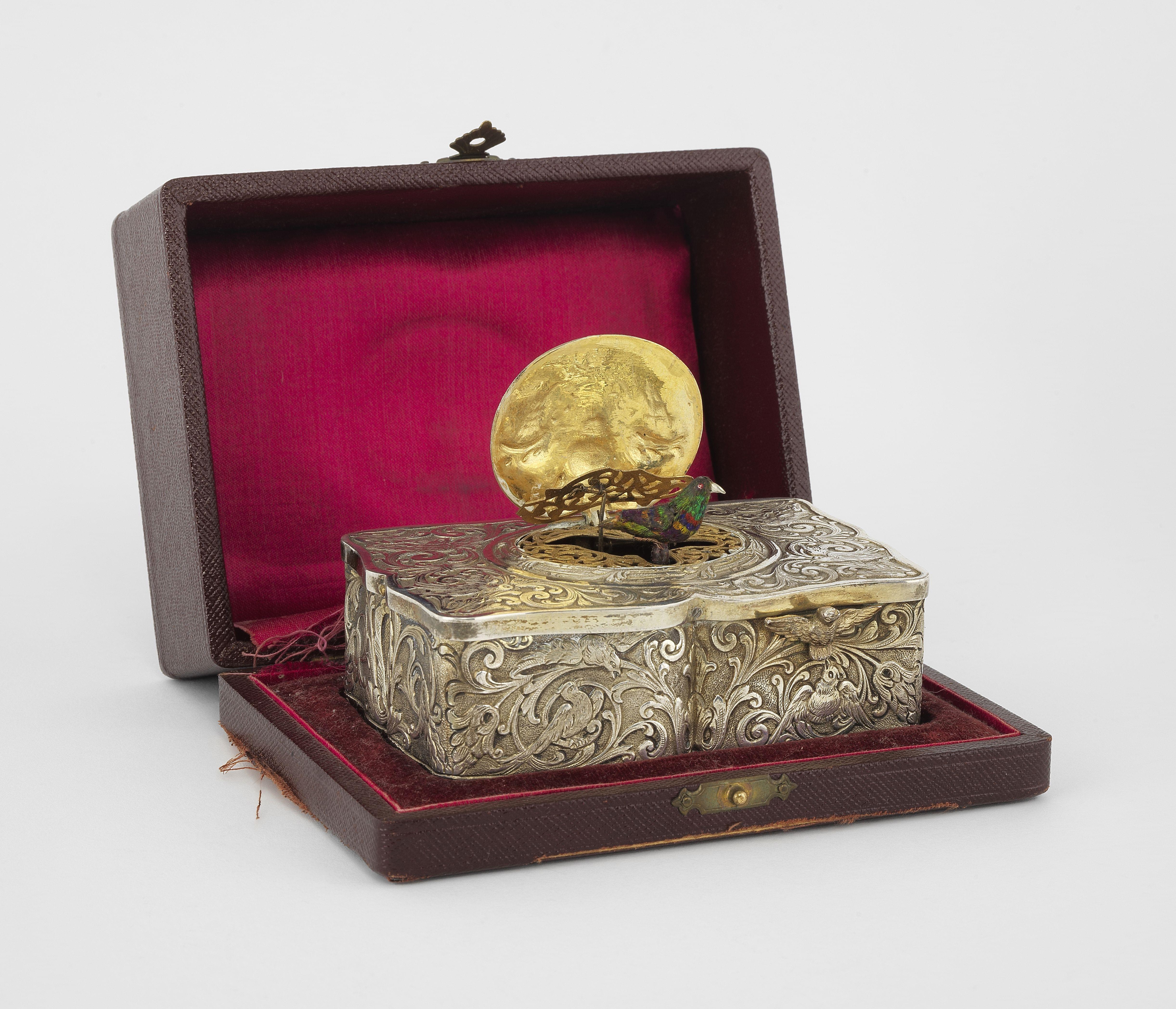 4272. Boîte à oiseau chanteur à décor de rinceaux et cornes d'abondance