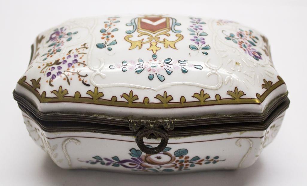 70. Coffret formant encrier en filigrane dessinant des motifs d'arab...