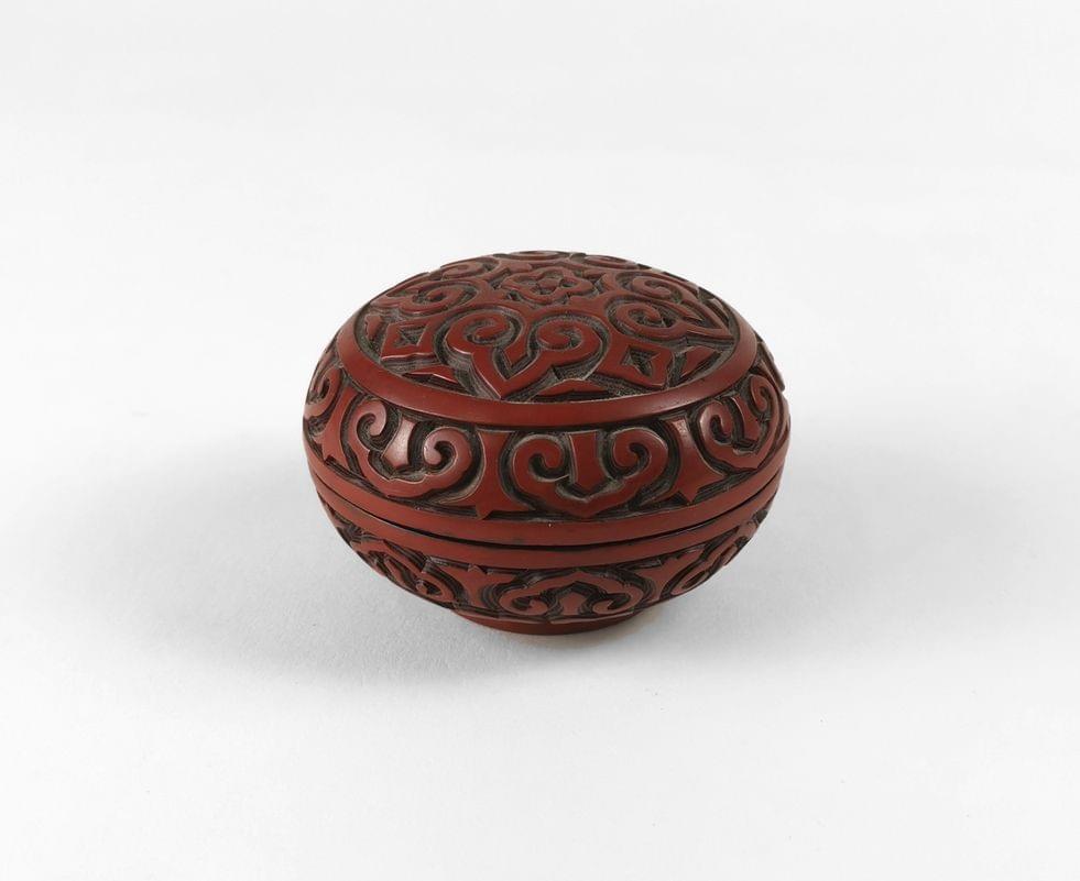 Laque de Cinabre à motif stylisé de ruyi, D 7,5 cm