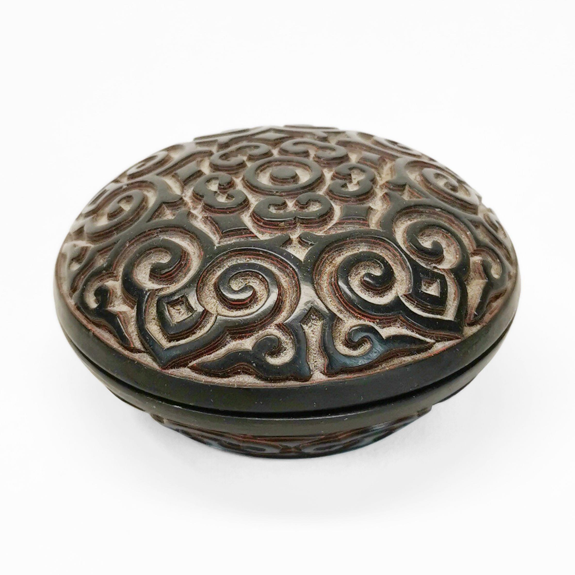 Laque de Cinabre à motif stylisé, D 7,5 cm