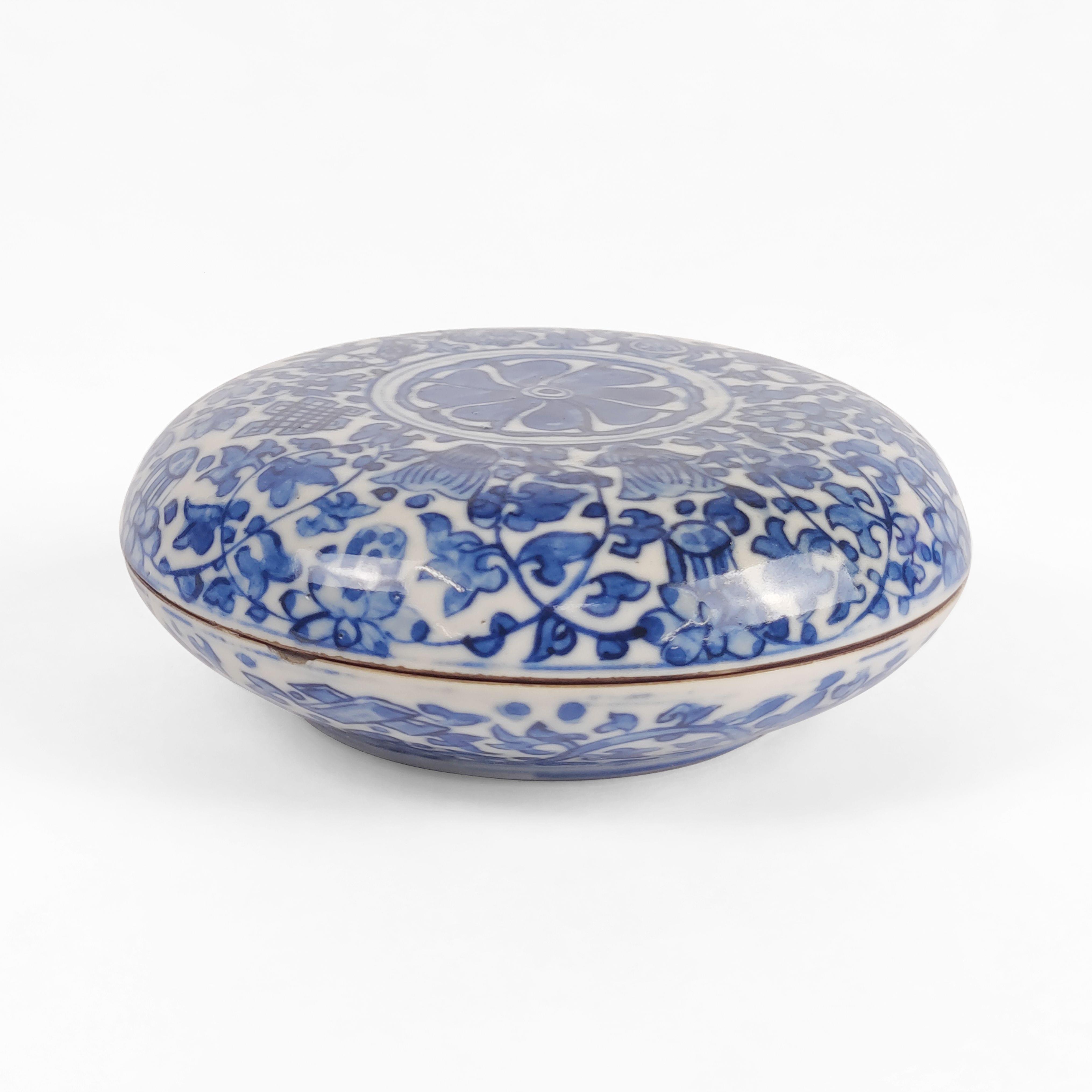 Porcelaine émaillée bleu blanc à décor de fleurs, D 11 cm