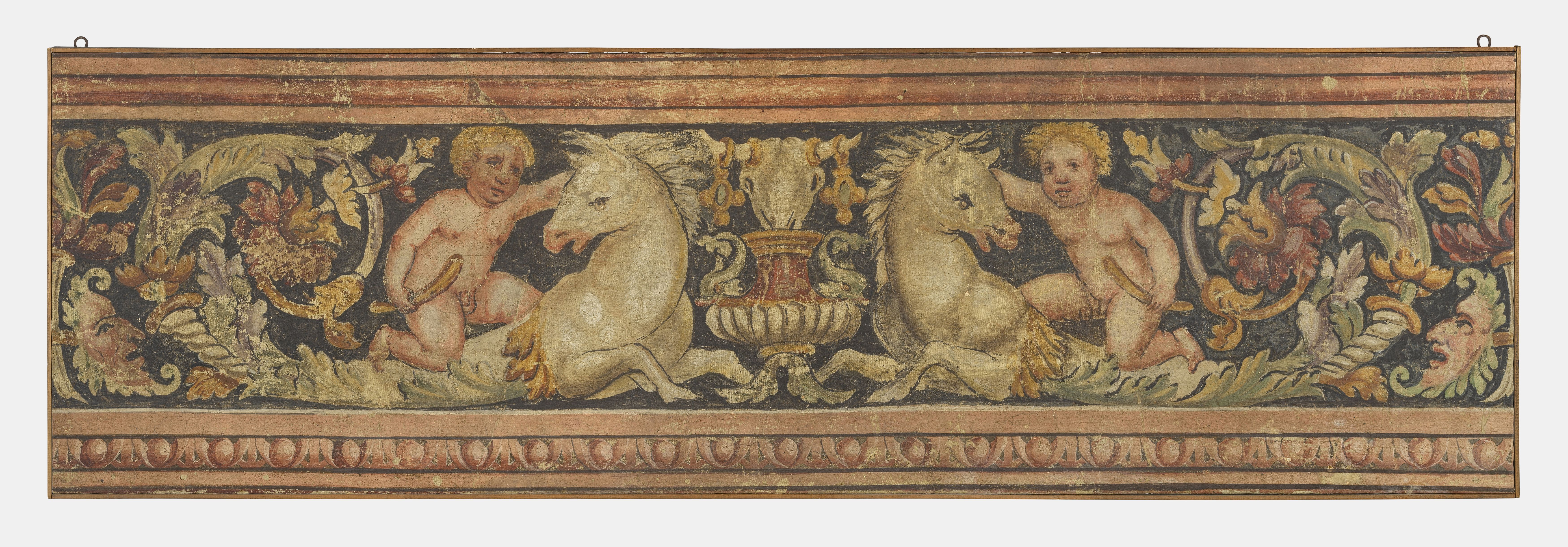 A motifs de putti et guirlandes, huile sur toile, 66x221 cm