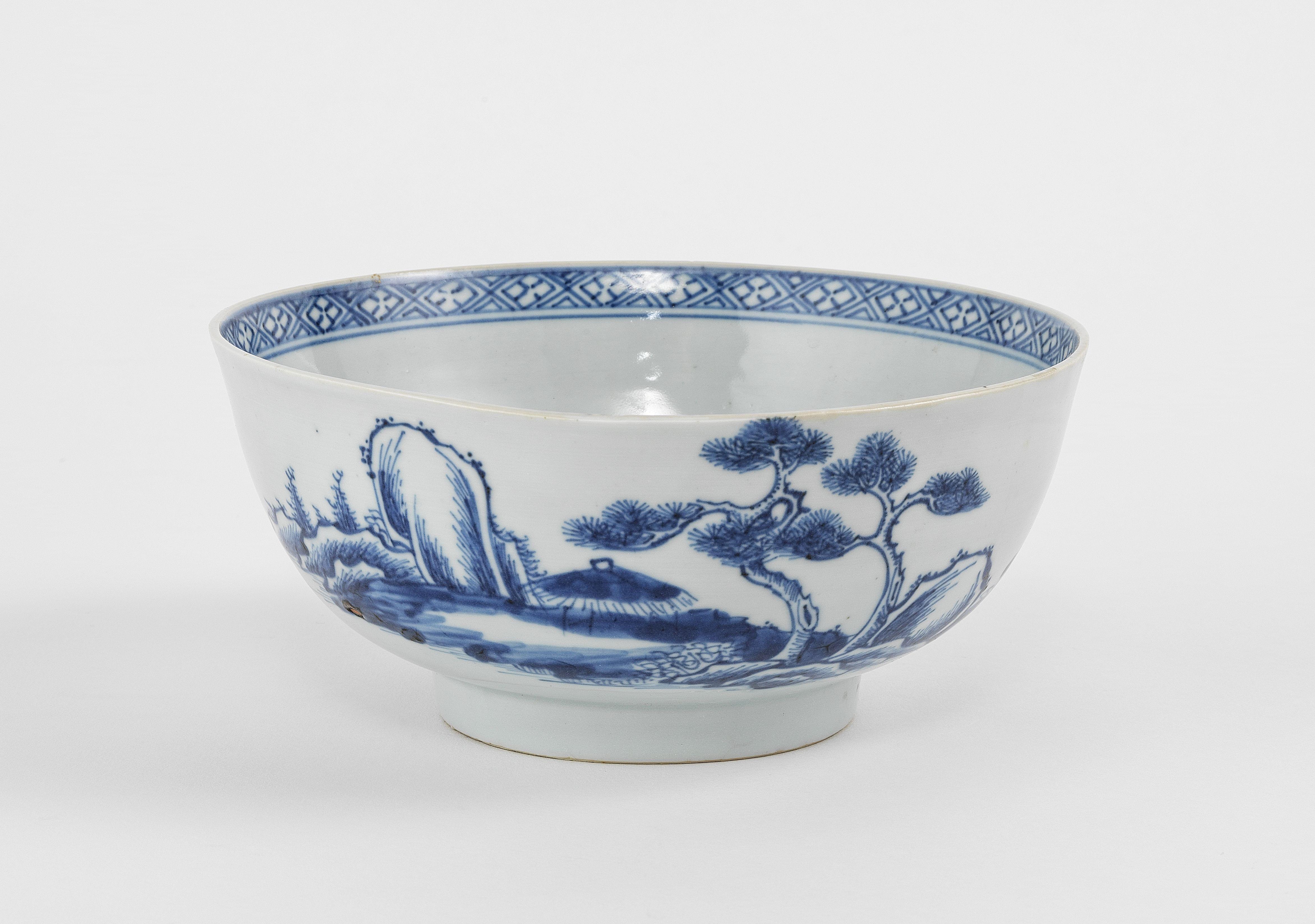 144. Important bol à punch sur présentoir, ses six tasses et son kovs...