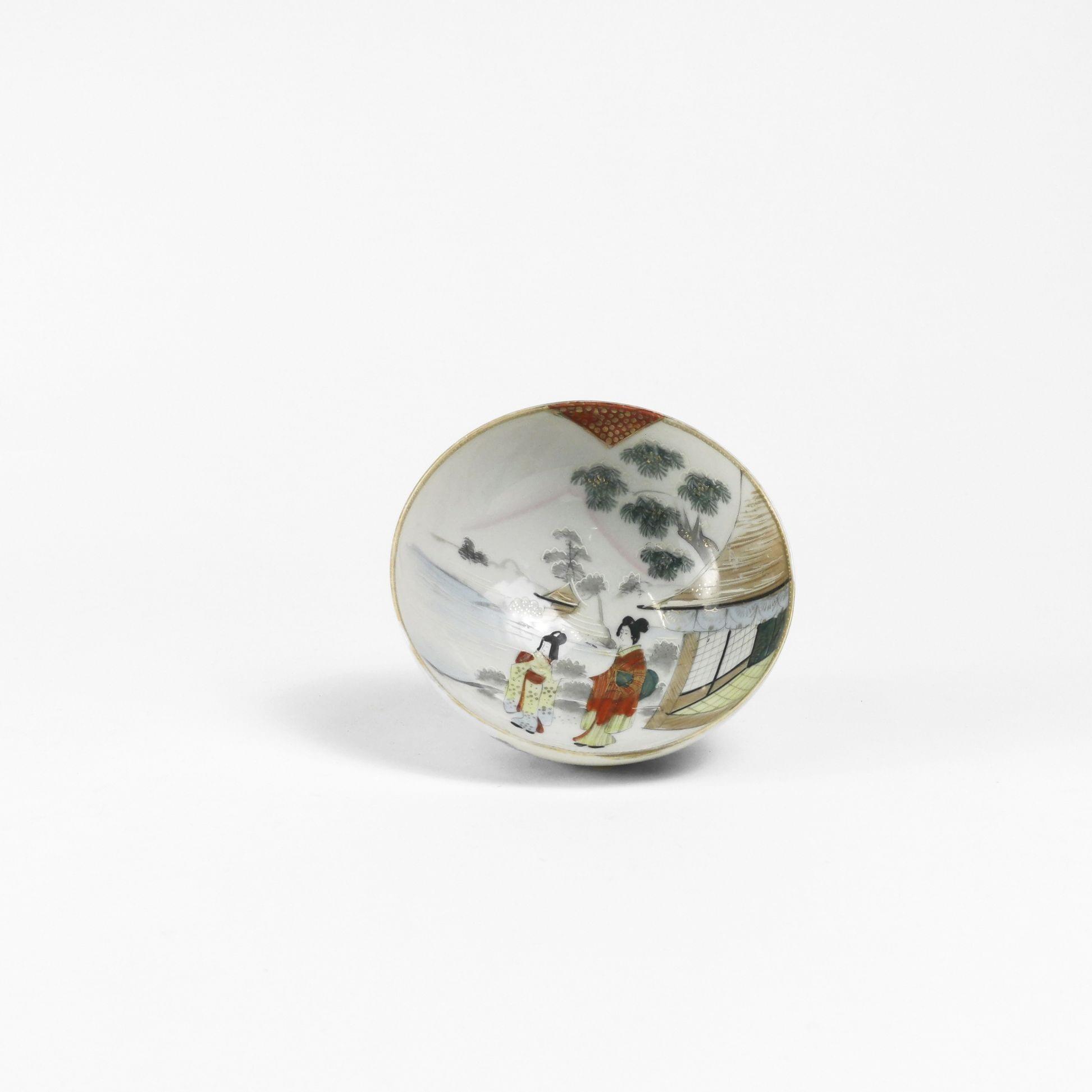 Porcelaine émaillée polychrome à décor de geishas, D 13 cm