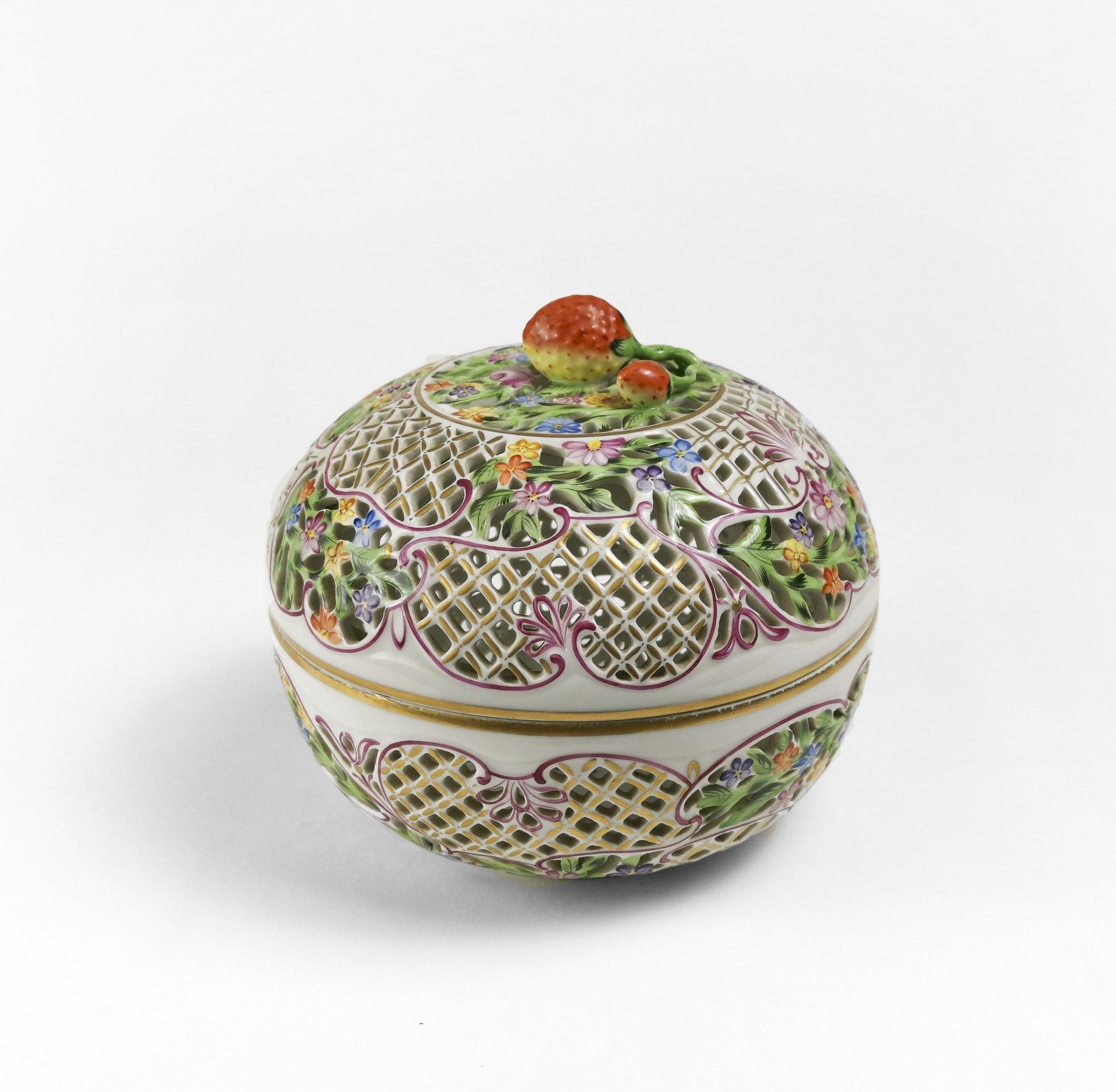987. Verseuse festonnée à motif repoussé de fruits et séraphins