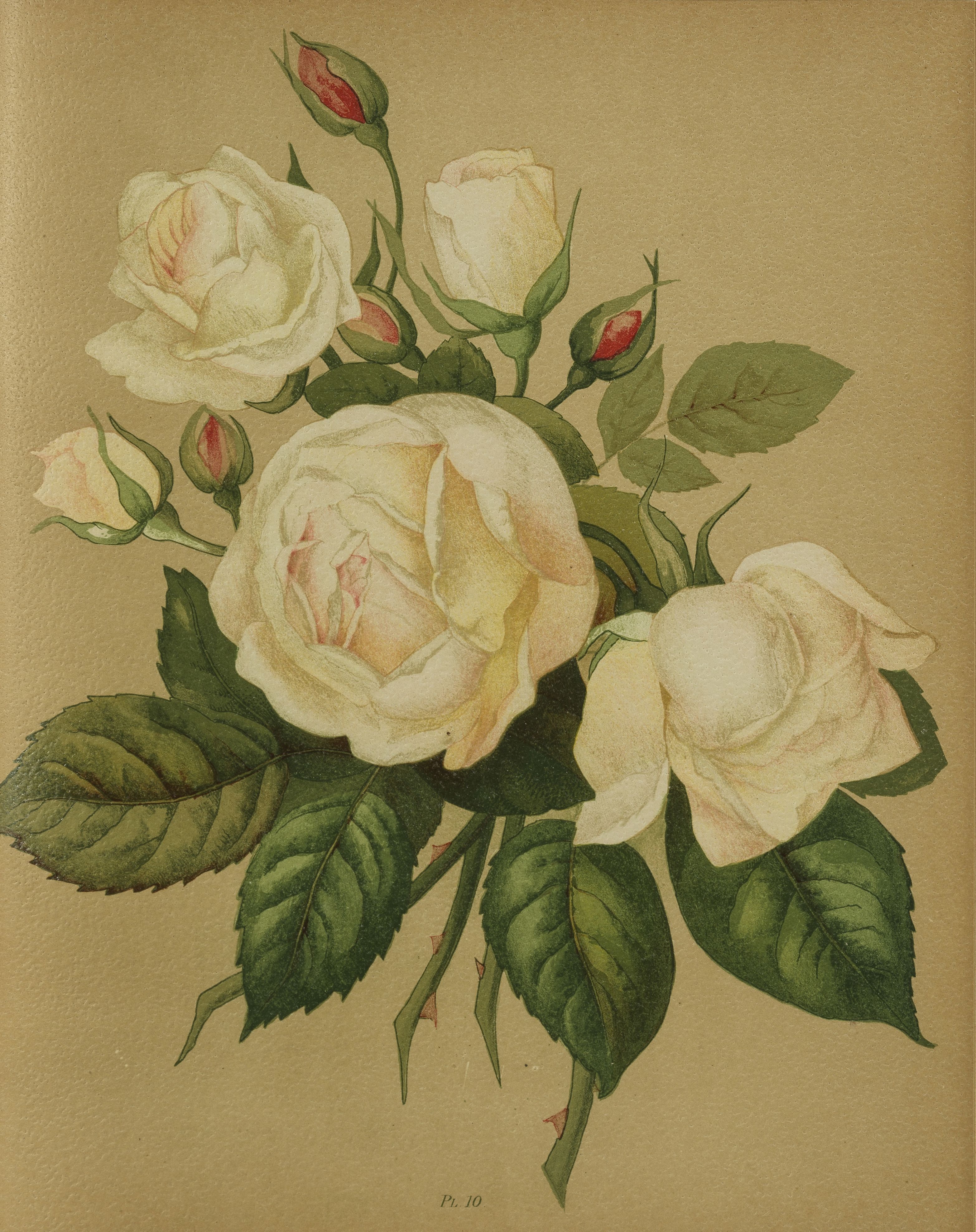 Paris, Librairie Nationale, s.d. (1903) ; in folio, demi basane racinée, dos orné en long. Reliure de l’éditeur. Iconographie, Histoire et Culture de la Rose. Paul Hariot (1854-1917) était conservateur au Museum d’Histoire naturelle. Belle édition illustrée de nombreuses vignettes dans le texte et de 60 planches en chromolithographie.