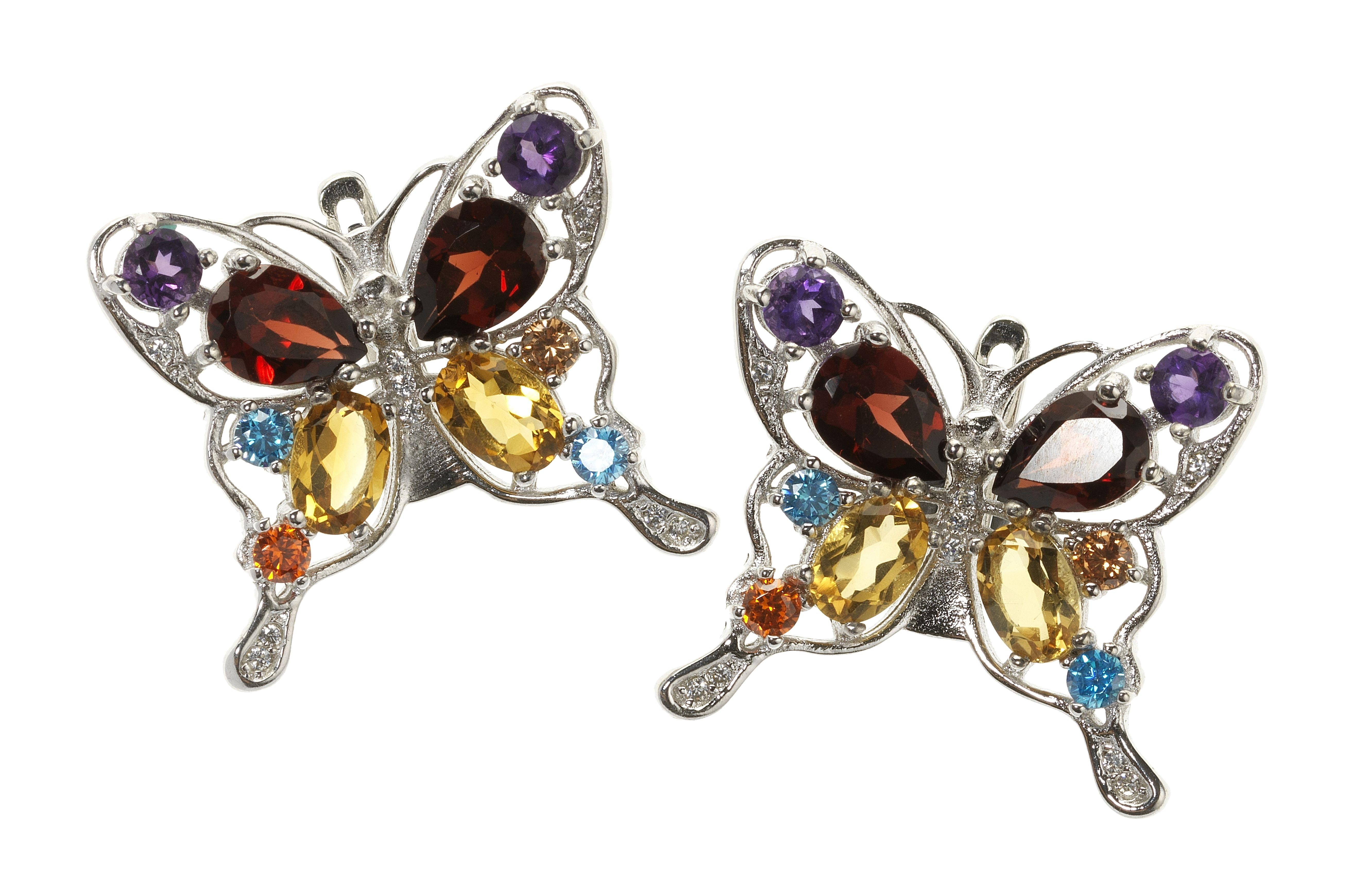 Pavés de pierres fines telles que l'améthyste, la citrine, le grenat et la topaze bleue, argent 925, H 2 cm. Pour les lots précédés d'un *, la TVA de 7,7% est due sur l'entier du prix d'adjudication.