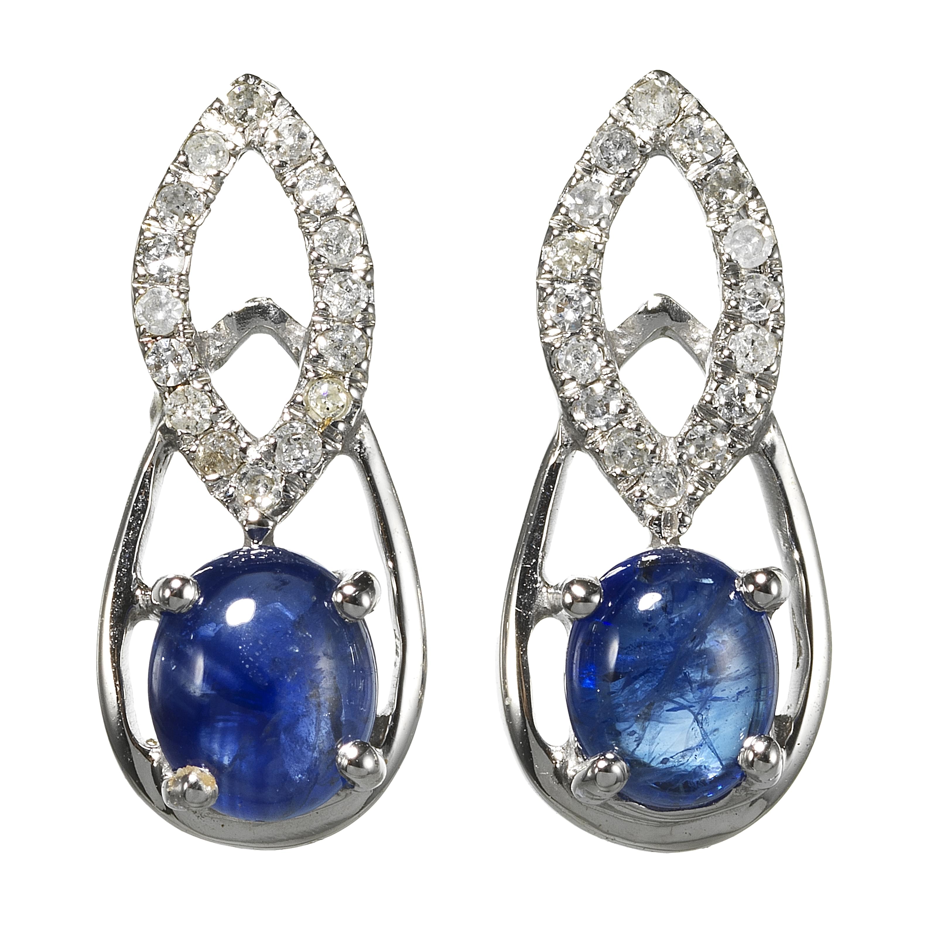 3319. *Boucles d'oreilles ajourées serties chacune d'un saphir taille cabochon ovale rehaussés de diamants