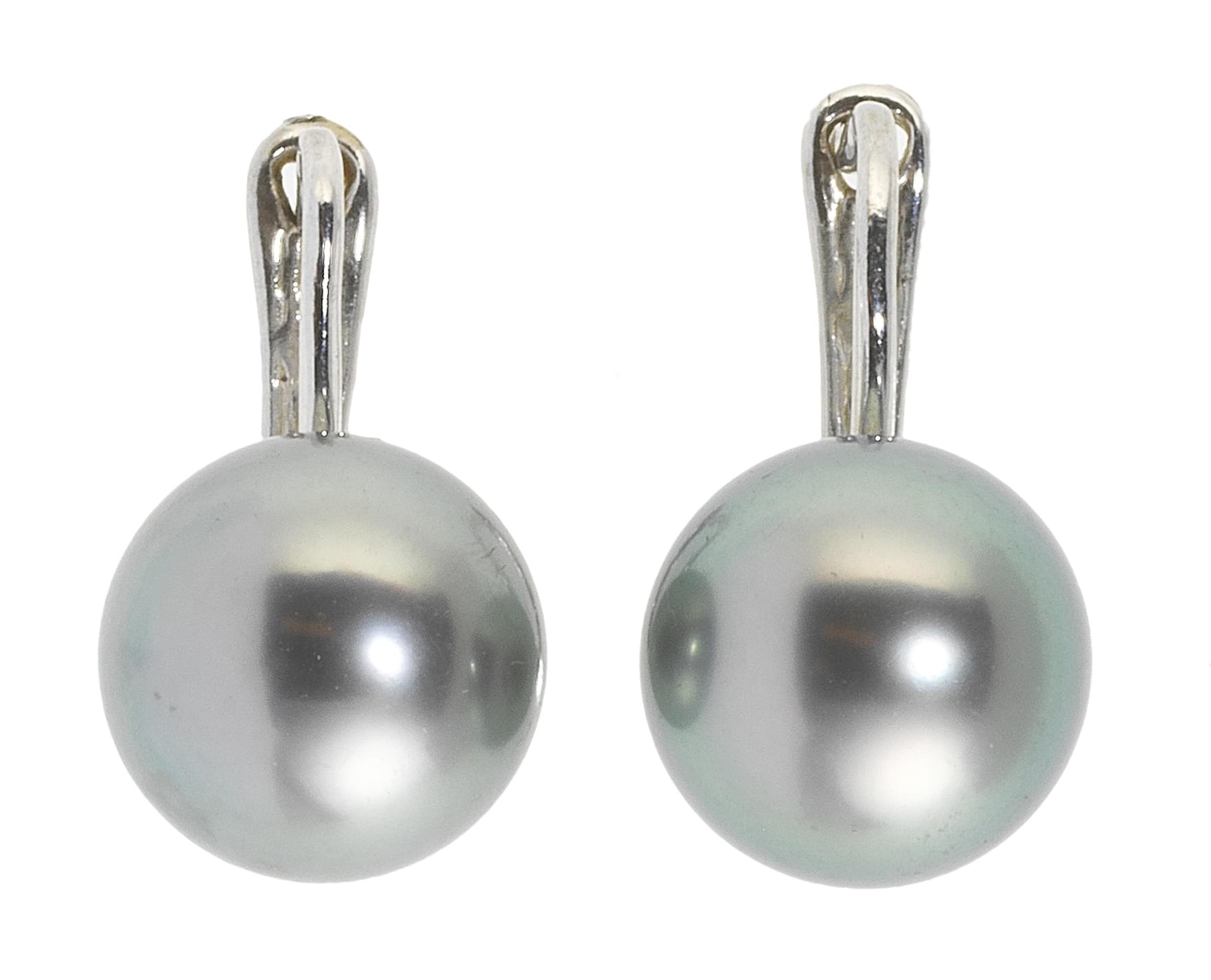 3160. *Boucles d'oreilles dormeuses serties de perles de Tahiti (D env. 8,5 mm)