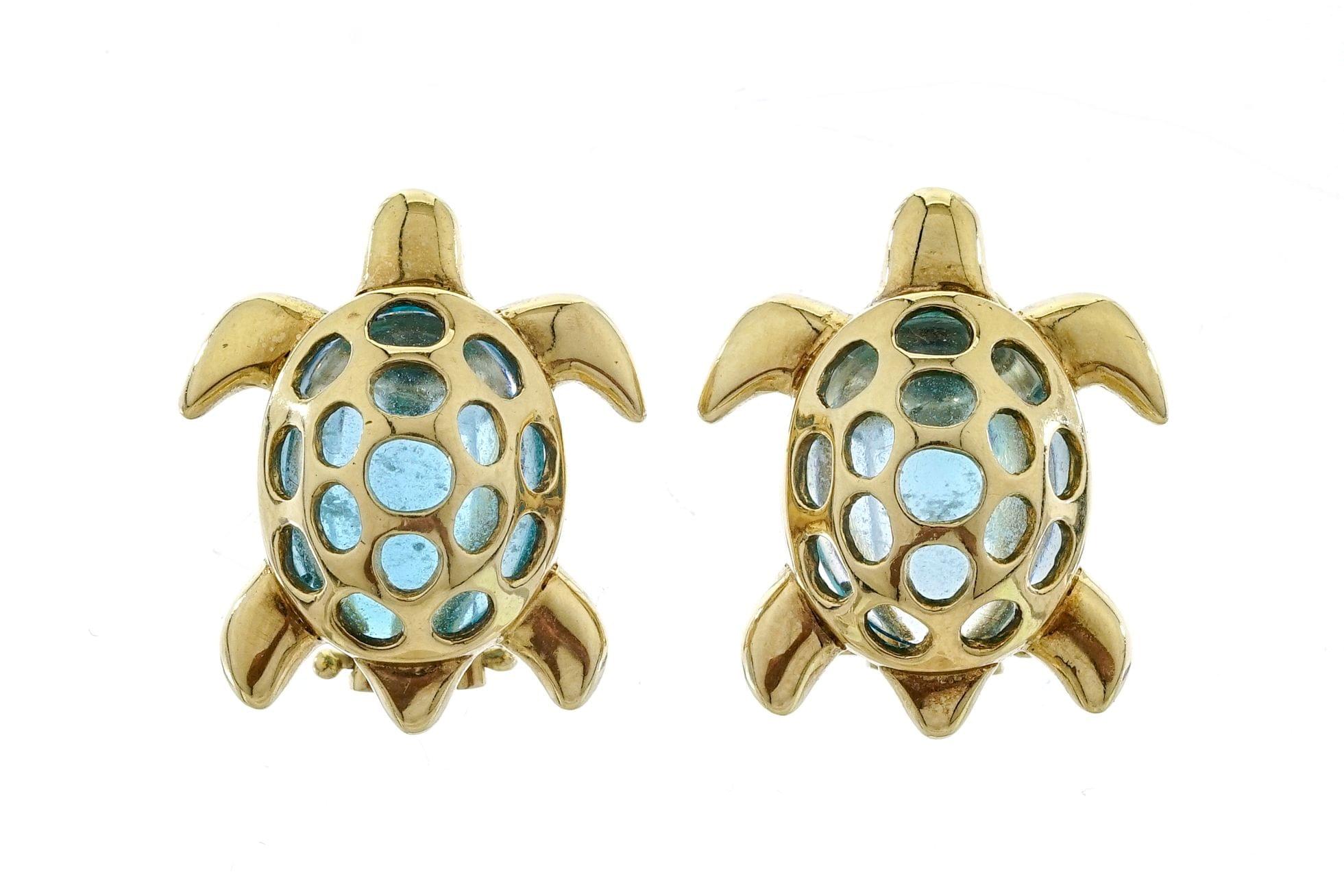 1035. Boucles d'oreilles à motif de tortues serties de topazes bleues