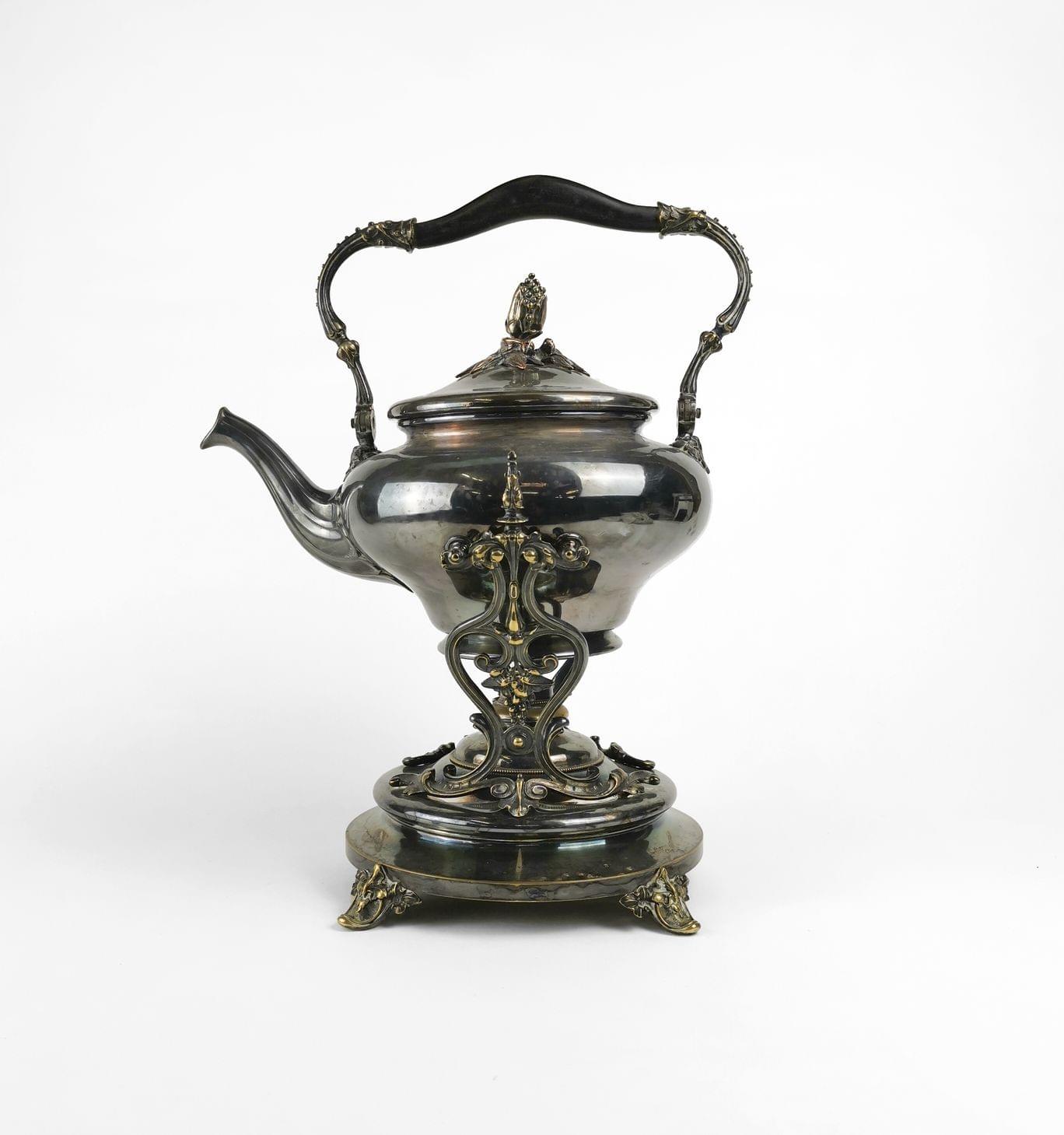 1022. Grande bouilloire bombée sur piètement de rinceaux