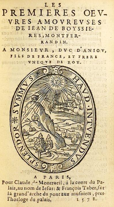 4387. BOYSSIERES (Jean de): Les Premières Oeuvres Amoureuses de Jean de Boyssières Montferrandin. à Monsieur Duc d'Anjou. Paris, Claude de