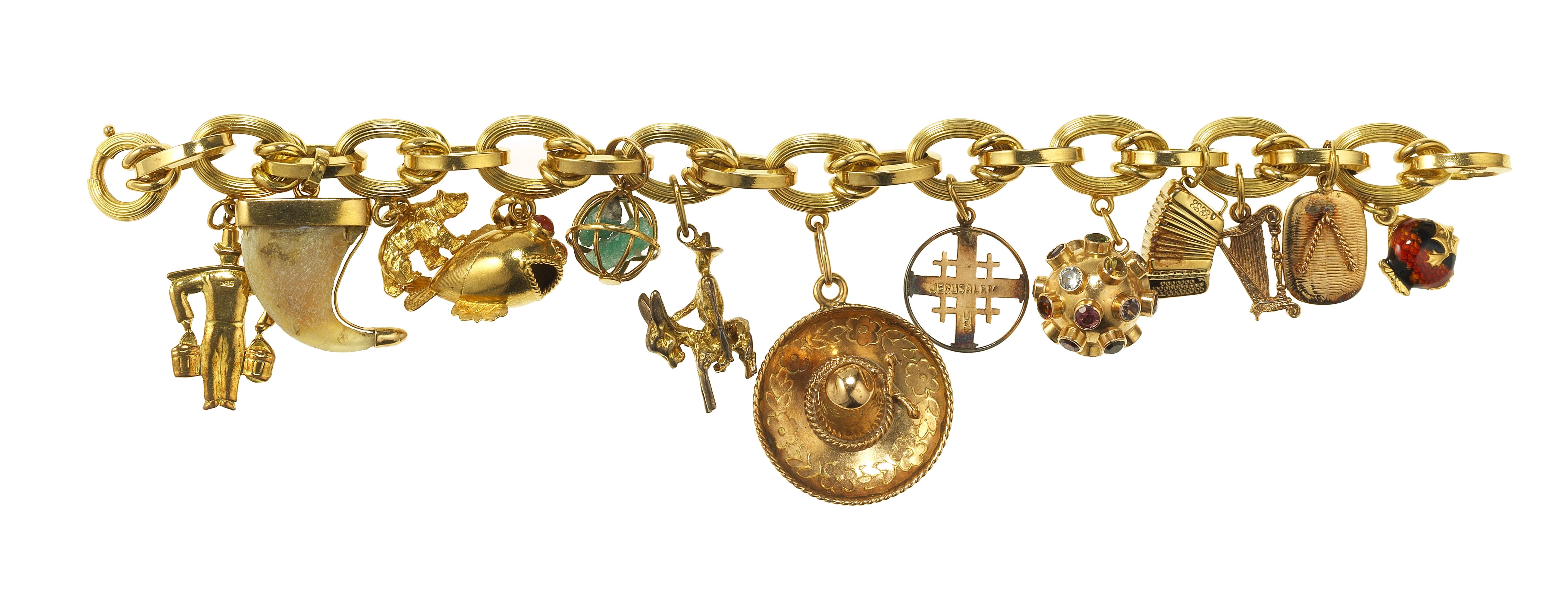 Or 750, 585, certaines pendeloques en métal, L 20 cm, poids brut 63 g. Provenance: collection Marisa Perret-Rezzonico