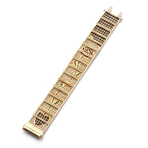 3611. Bracelet manchette articulé de style Art déco à décor d'une rose