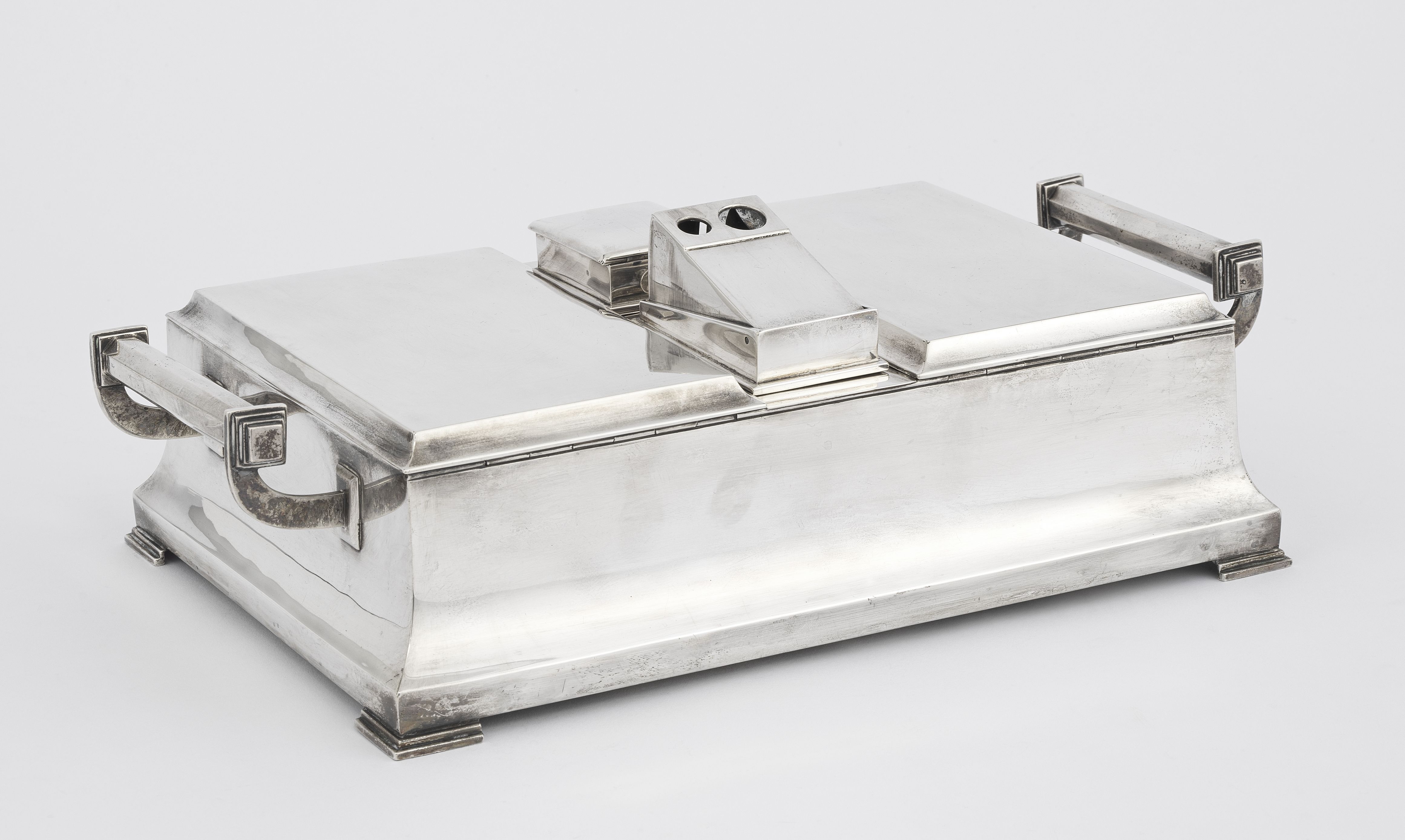 3665. Boîte à cigares ouvrant sur deux casiers entourant une boîte à a...