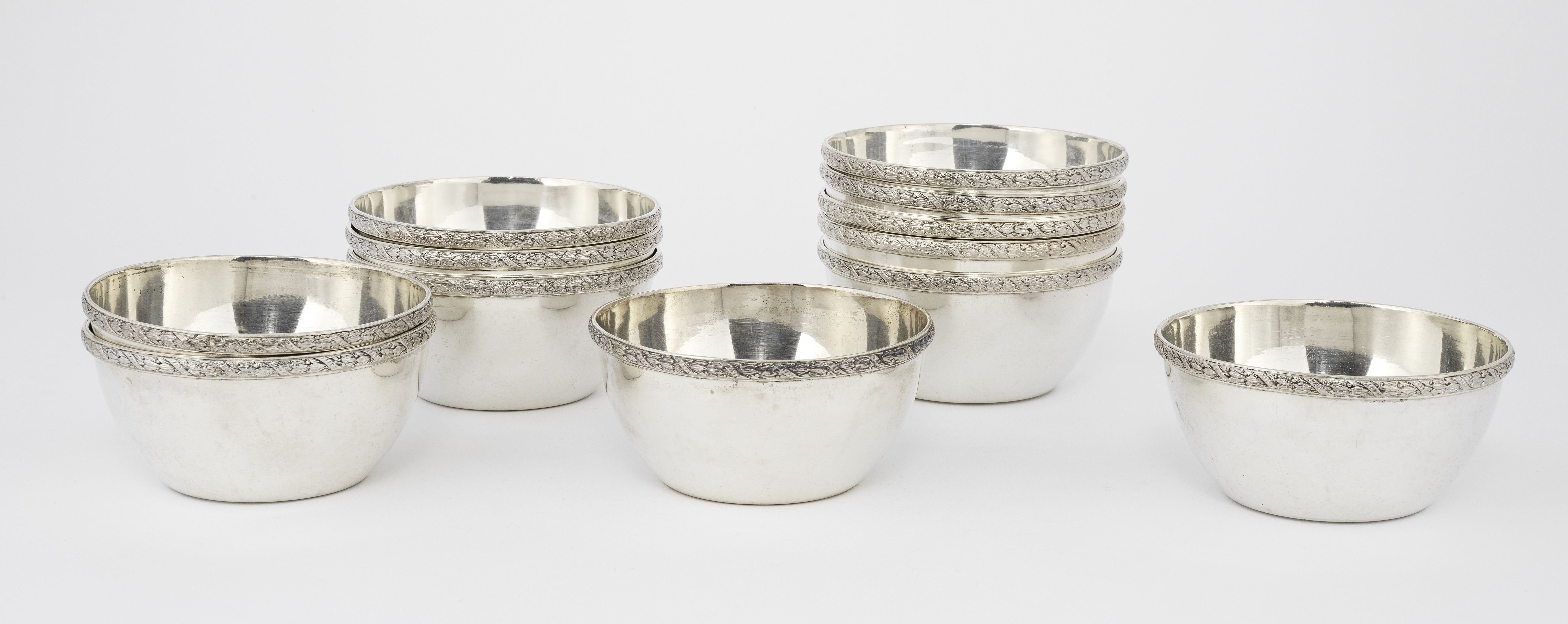 3708. 12 bols rince-doigts à bordure laurier ruban