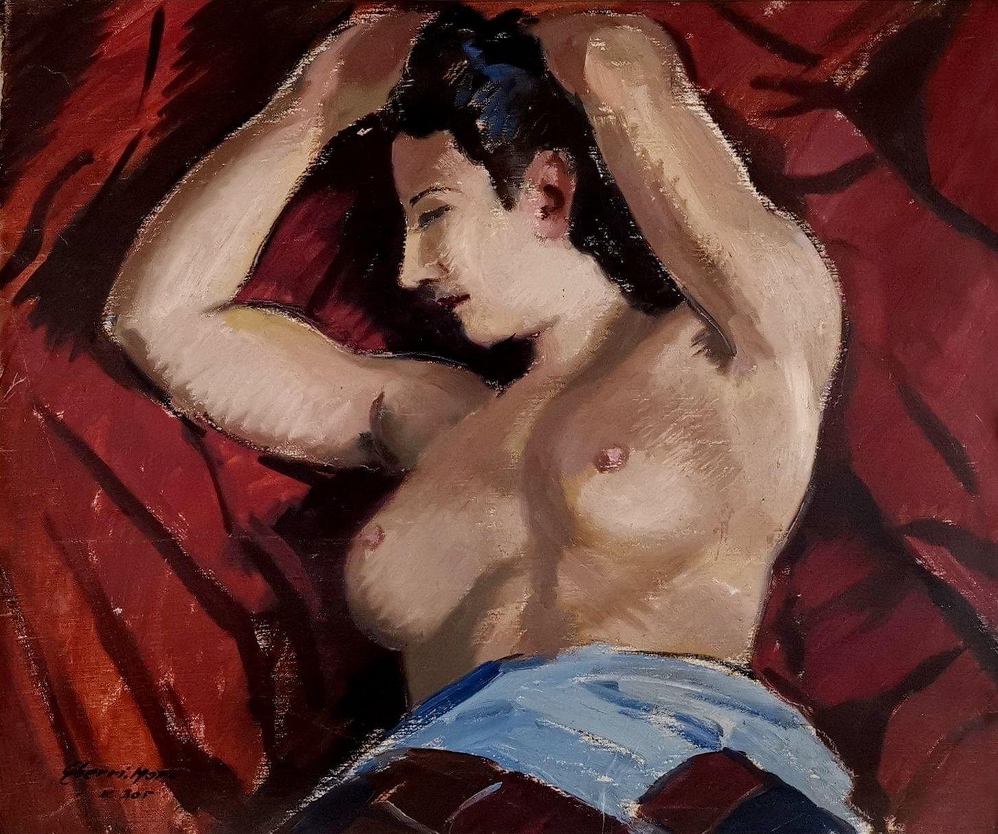 Nu féminin en buste, huile sur toile, signée, 45X55 cm