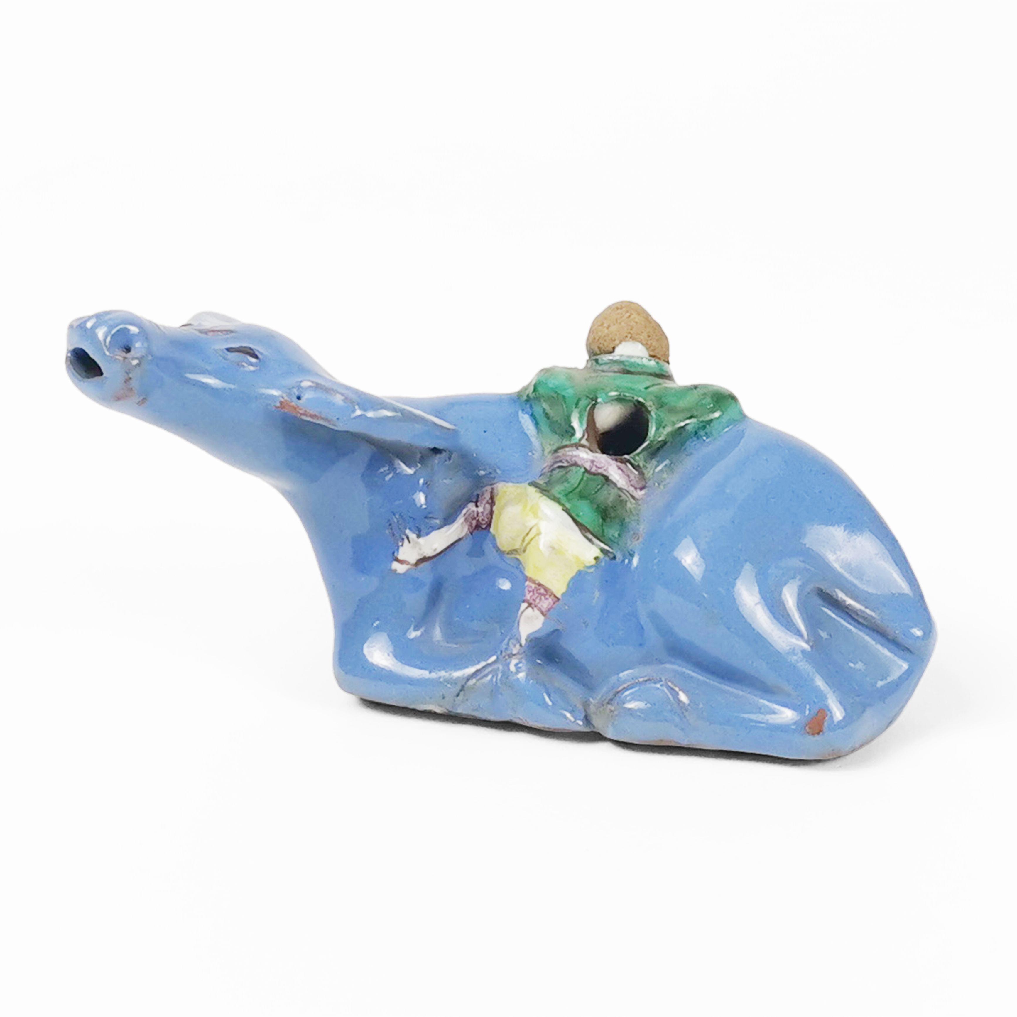 Porcelaine émaillée bleu, vert et jaune, L 11 cml