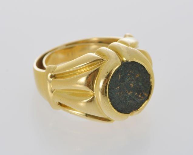 111. Bulgari, Monete, bague sertie d'une pièce romaine du 3ème siècle avant J. C.