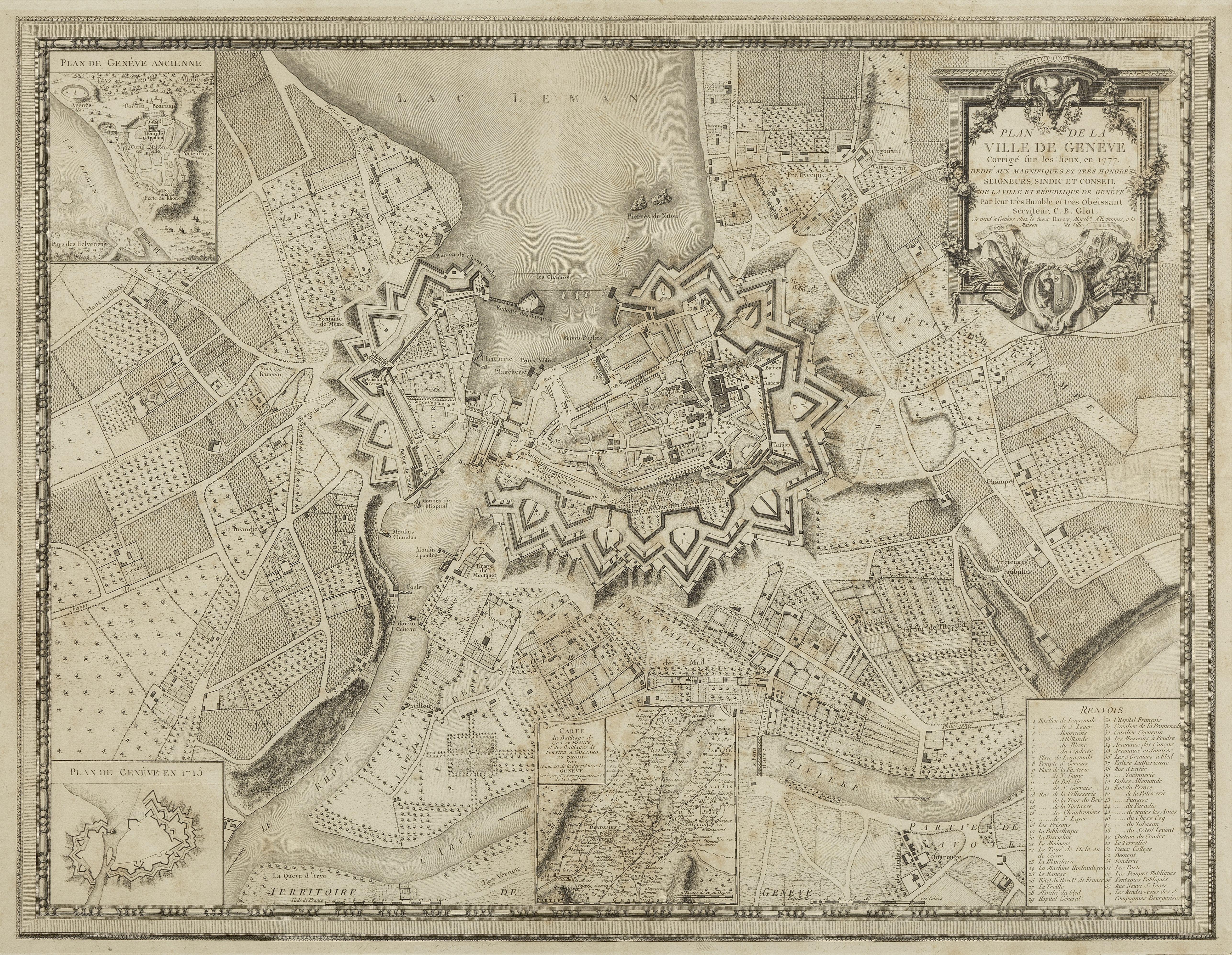 Plan de la ville de Genève, eau-forte, datée 1777, 53x66 cm