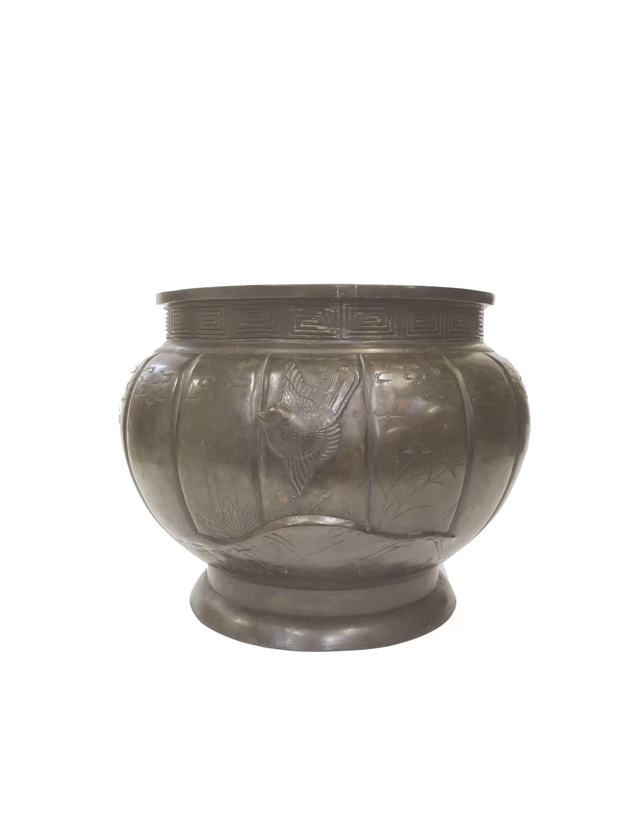 Bronze à patine foncée à motifs floraux, 31x37 cm