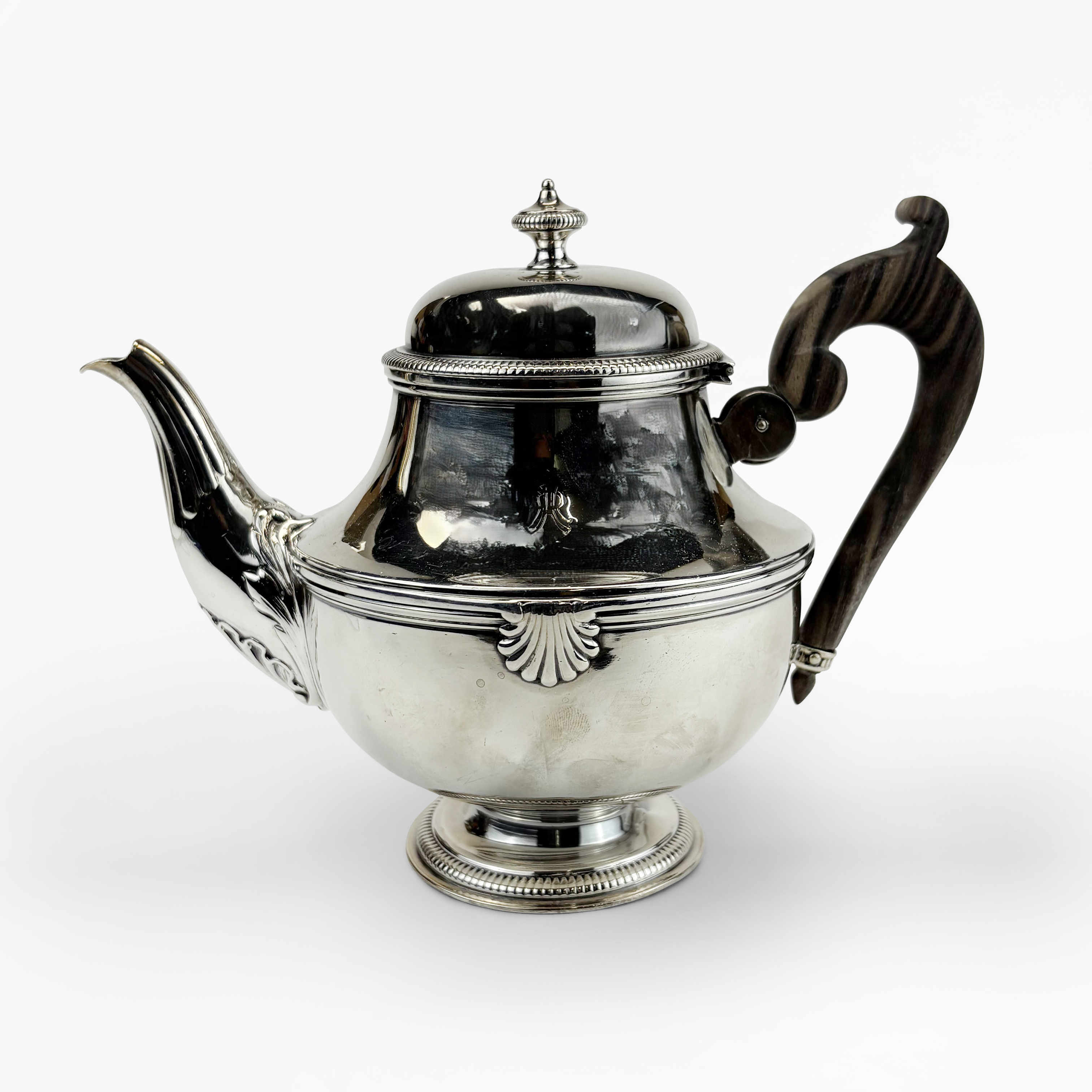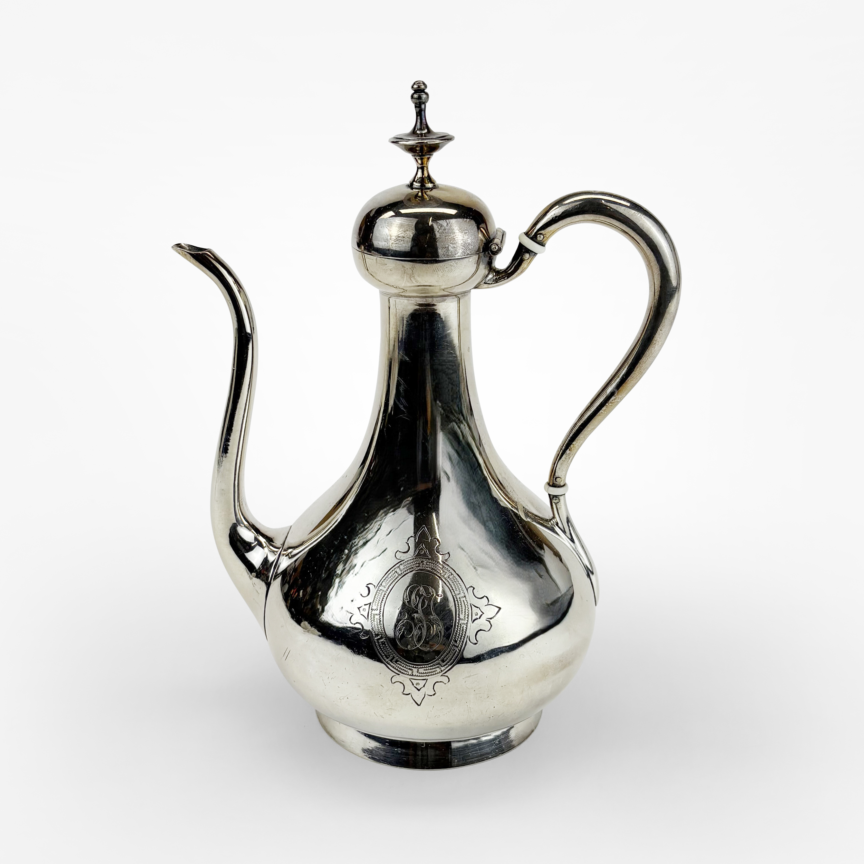3559. Cafetière d'époque Empire gravée d'armoiries