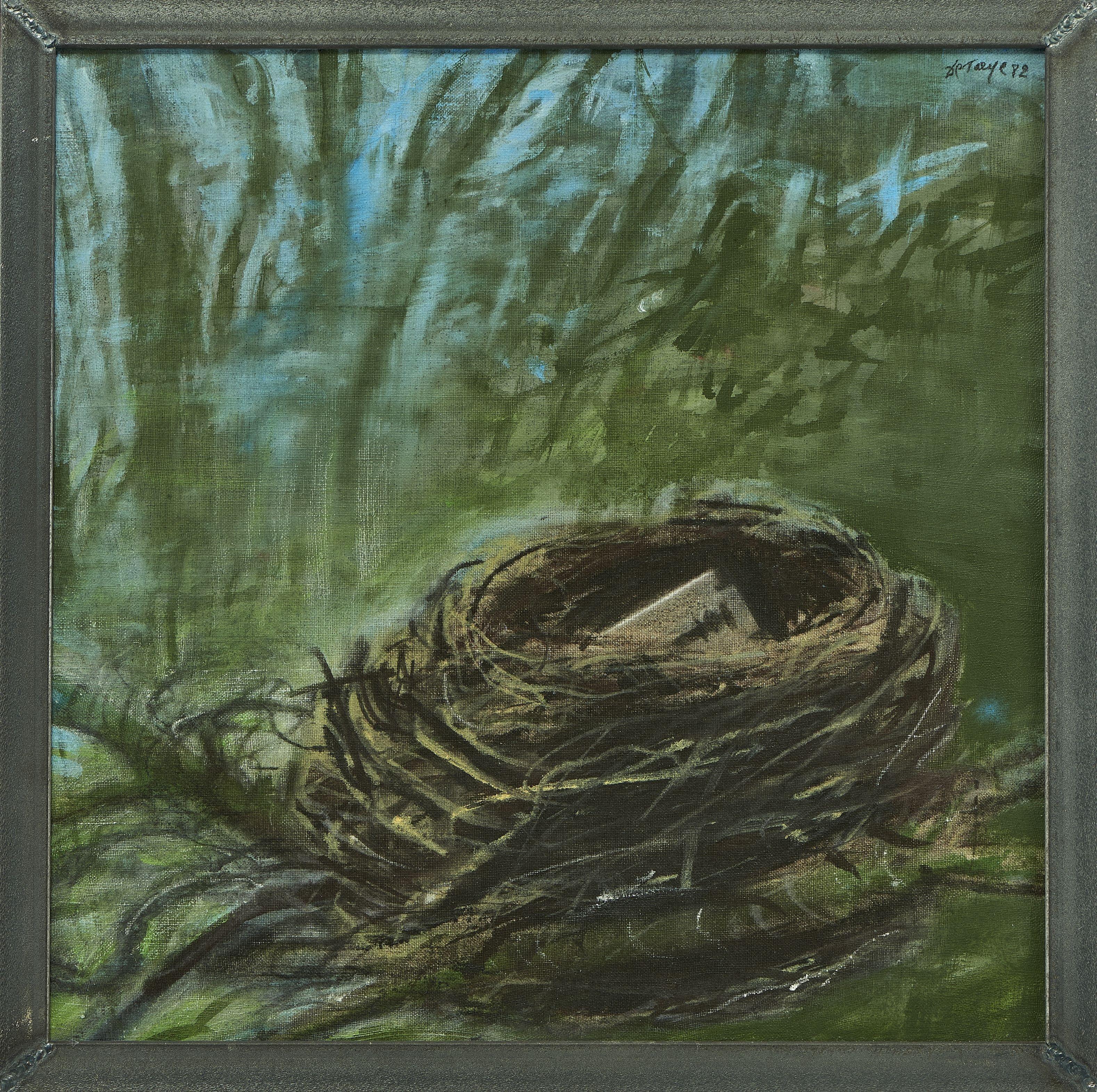 Nature morte, fusain et craie blanche sur toile, 53x40 cm