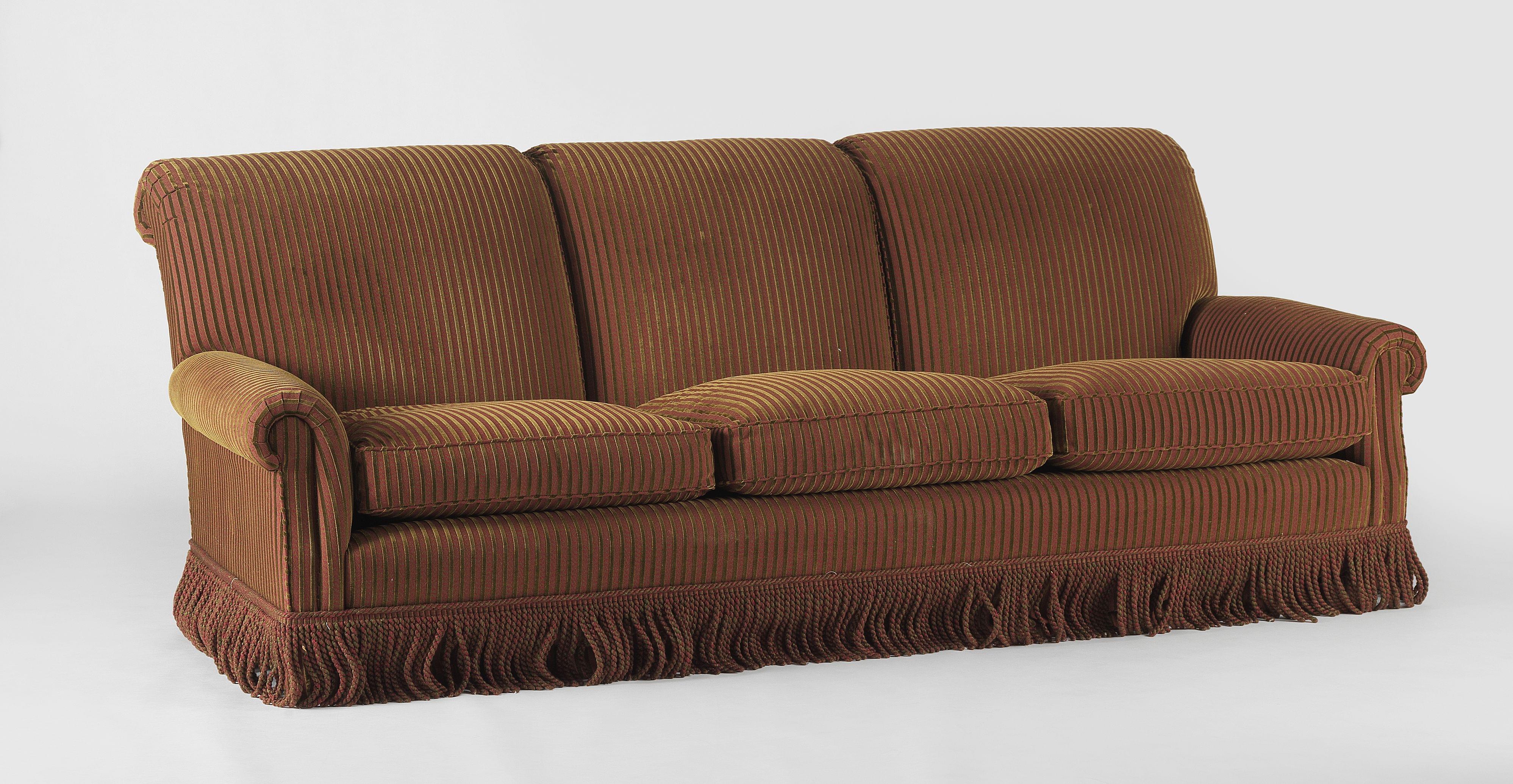 Velours à rayures bronze sur fond rouge, L 245 cm