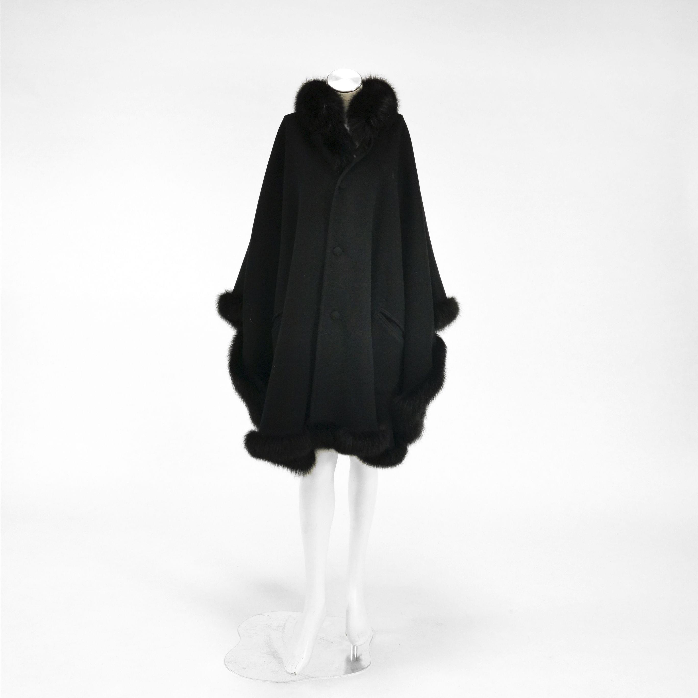3988. Cape noire bordée de fourrure