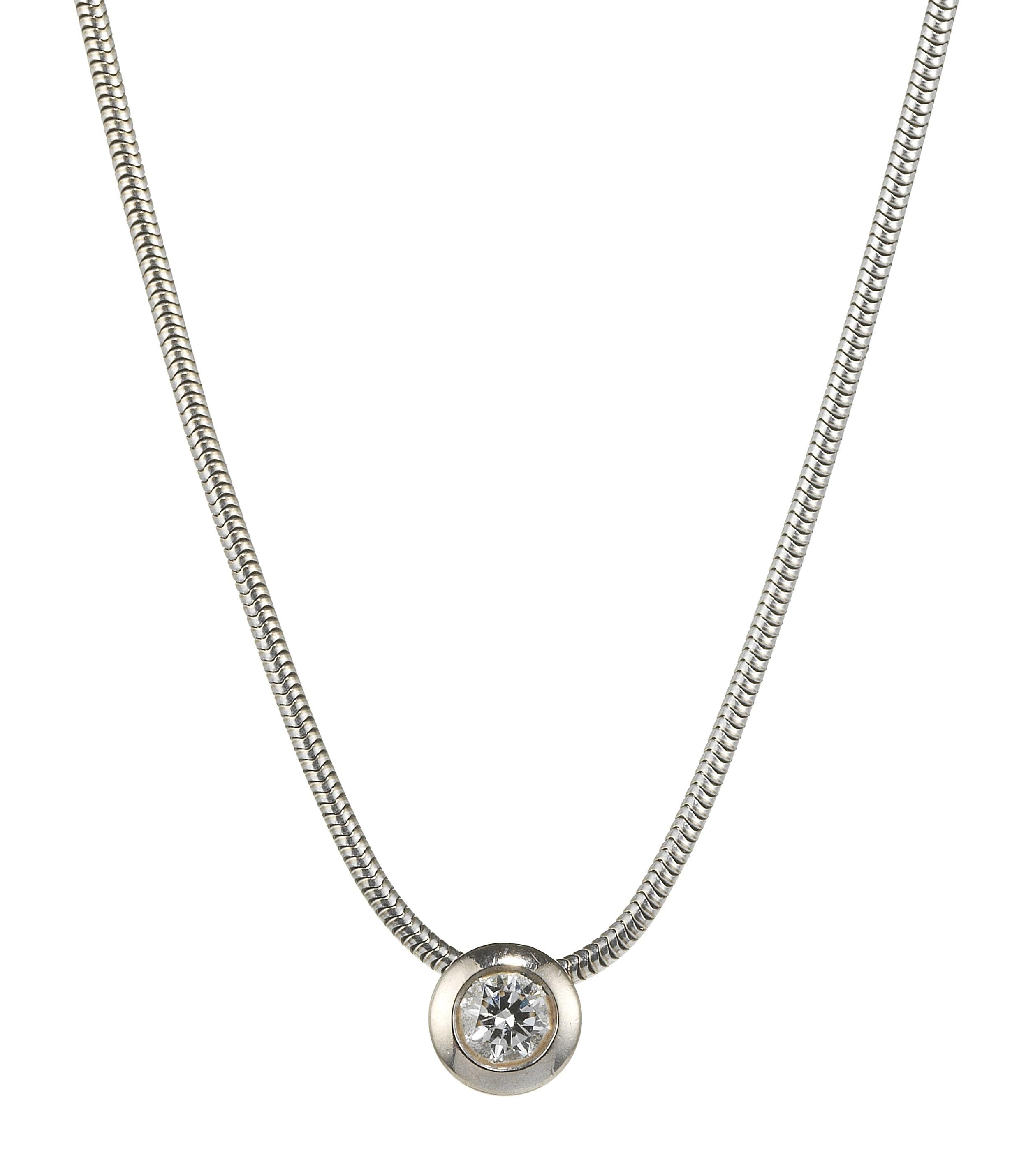 Entourée et épaulée de diamants taille 8/8, or gris 585, doigt 5...