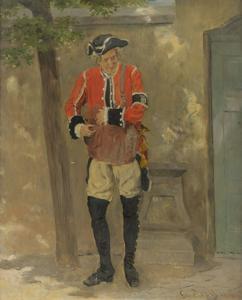 Le héraut, huile sur panneau, signée et datée 1916, 32x26 cm