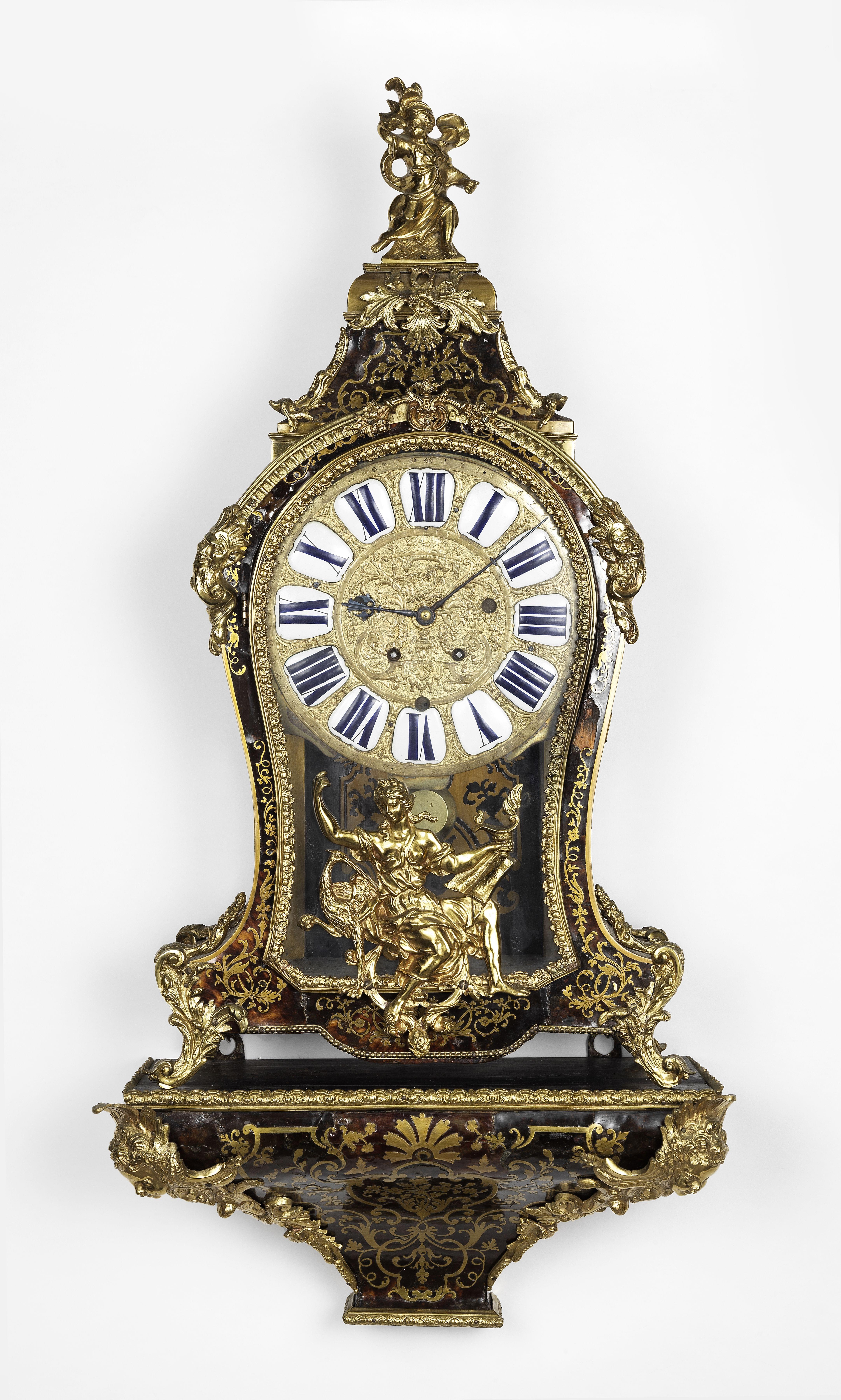 Marqueterie Boulle, bronze doré et émail blanc, suspension à lamelle, H 103 cm