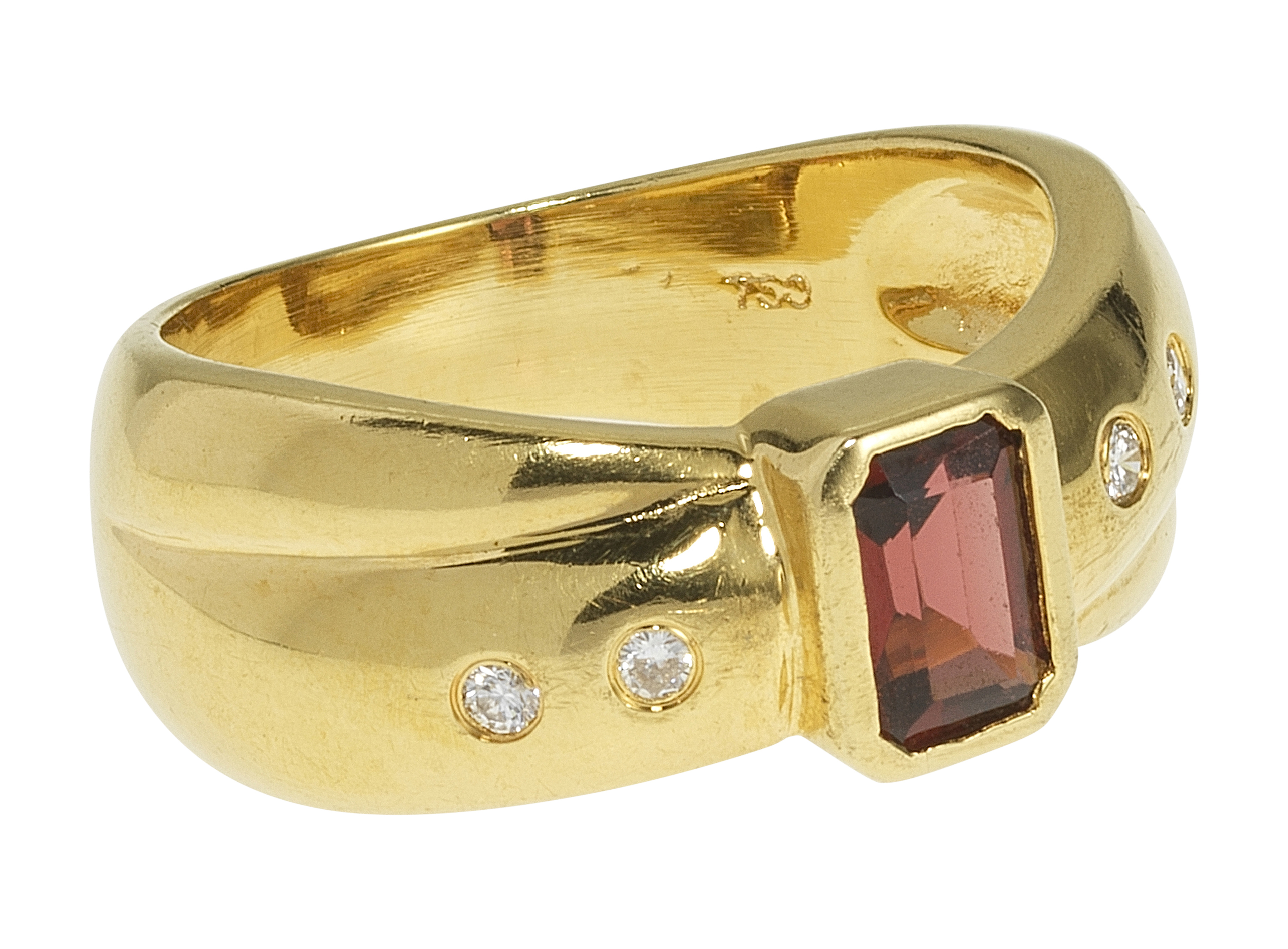 4367. Bague à double bandeau serti d'un grenat taille émeraude