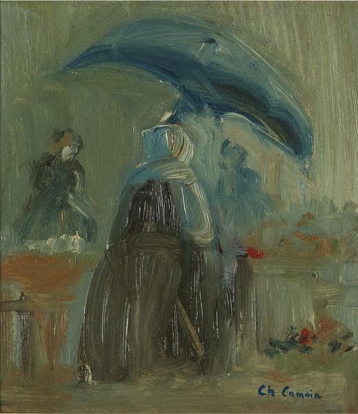 Femme à l'ombrelle, huile sur carton, 23x20 cm