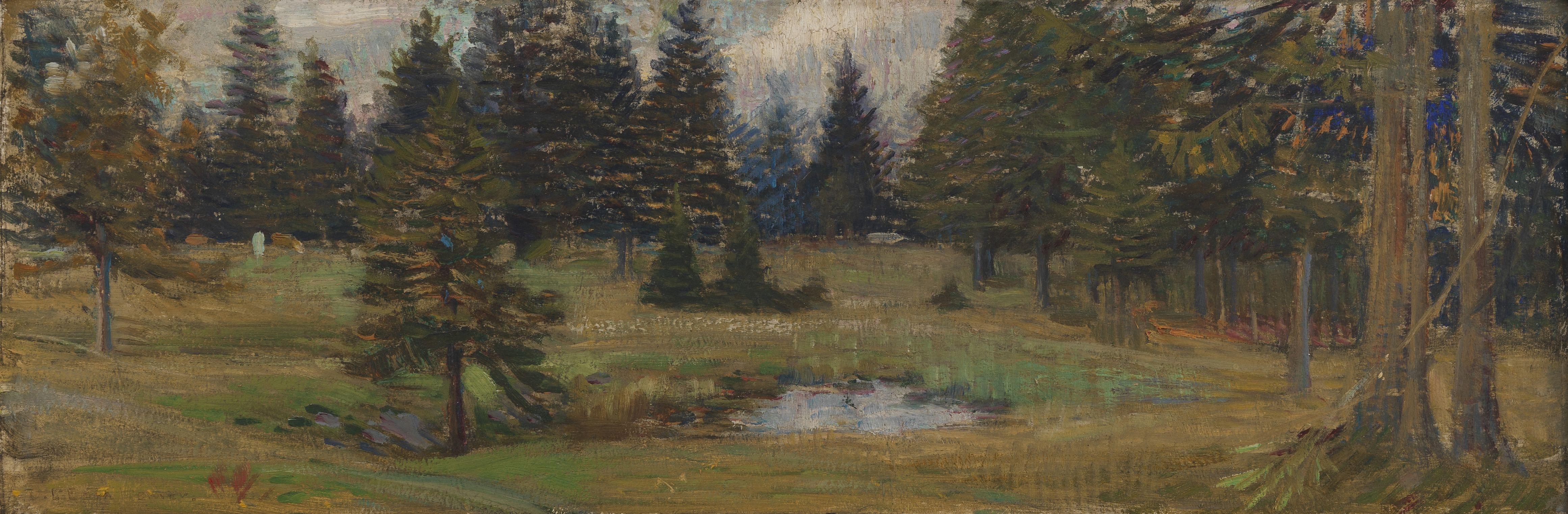 Prise d'eau à la rivière, huile sur toile, signée, 31x40 cm